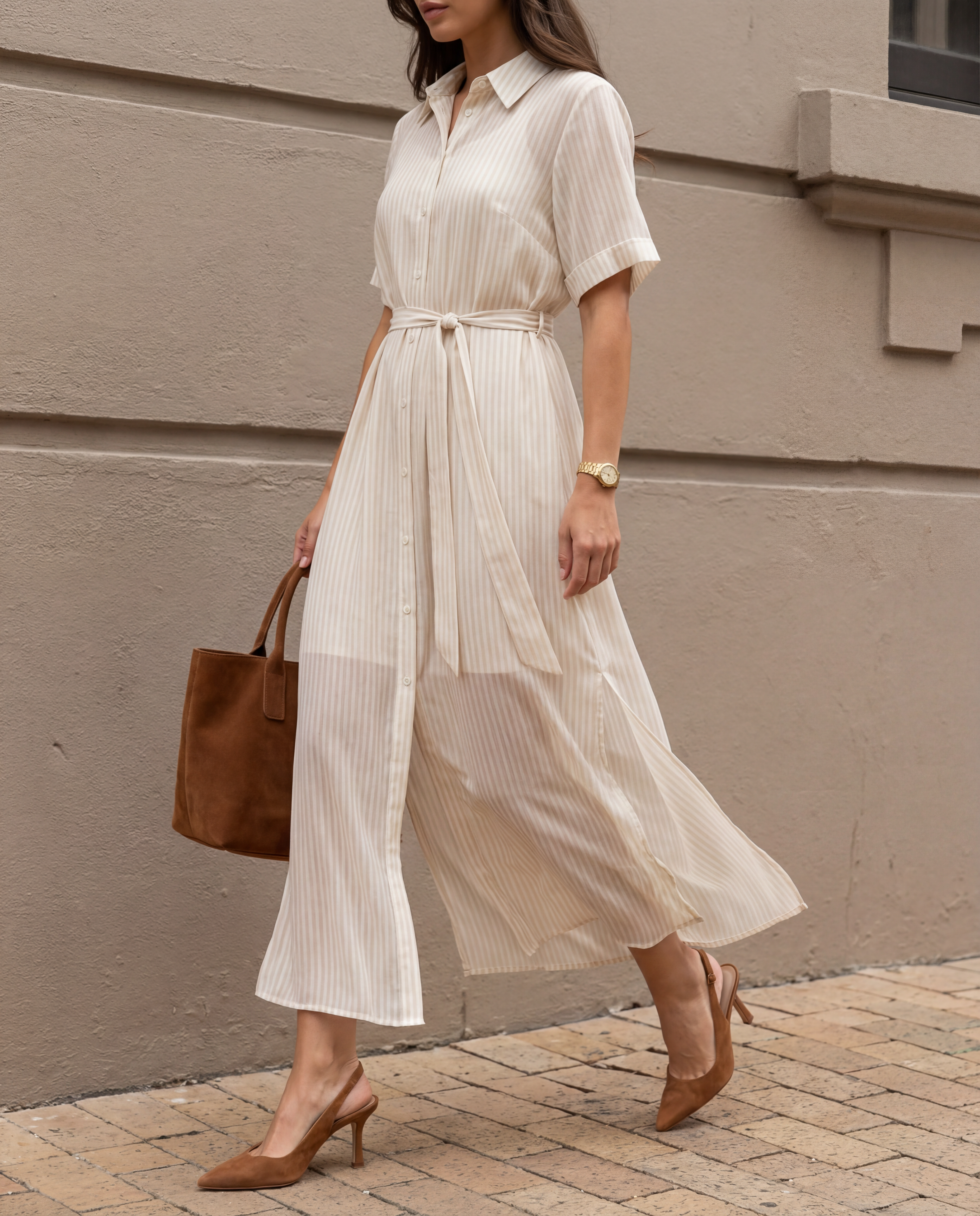 Chiffon Stripe Dress Sand