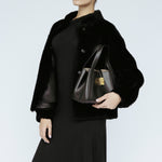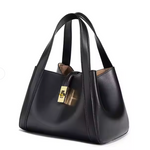 A statement of refined luxury, this genuine leather bucket bag seamlessly blends retro-inspired charm with contemporary functionality. Crafted from the finest full-grain leather, its structured bucket silhouette is accentuated by gleaming gold hardware, evoking a sense of understated opulence.