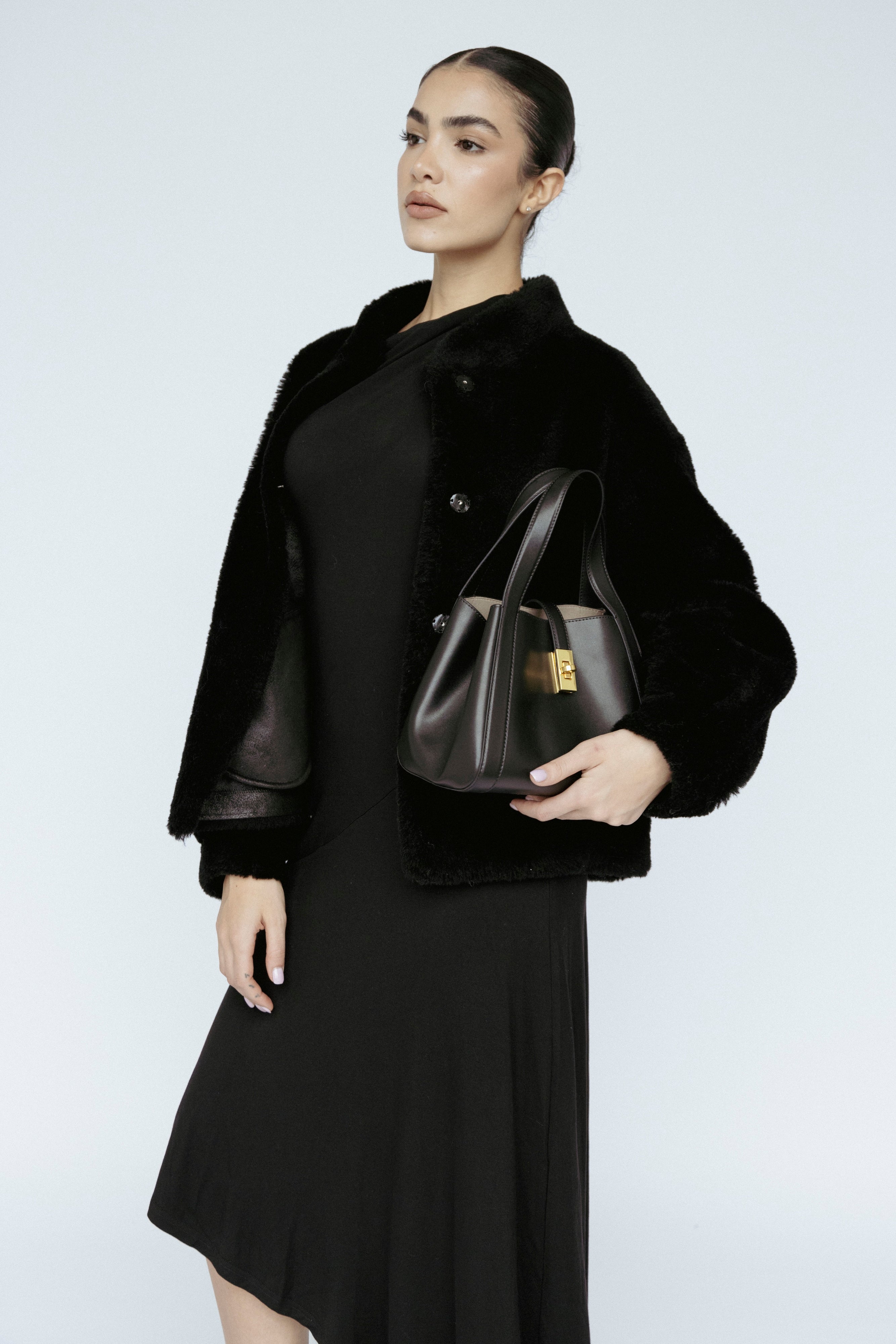 Designed for effortless versatility, this piece offers both top handles for a polished hand-carried look and a removable long shoulder strap, allowing for an elegant over-the-shoulder drape. Inside, a removable microfibre pouch adds an extra layer of organization—perfect for securing your essentials while maintaining the bag’s sleek aesthetic.