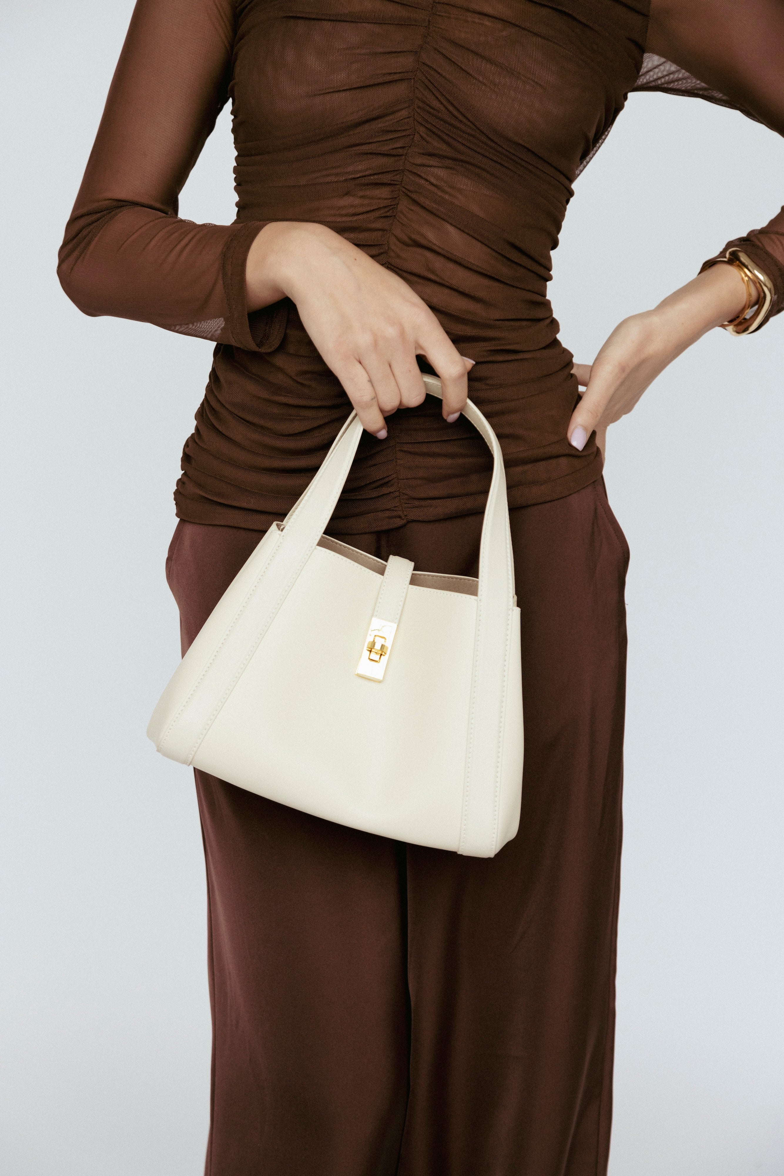 Designed for effortless versatility, this piece offers both top handles for a polished hand-carried look and a removable long shoulder strap, allowing for an elegant over-the-shoulder drape. Inside, a removable microfibre pouch adds an extra layer of organization—perfect for securing your essentials while maintaining the bag’s sleek aesthetic.