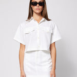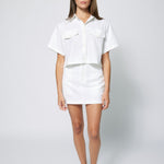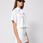 Wear it open as a striking layer over cocktail dresses, or style it with its matching set skirt as shown for a sophisticated, polished look. Not a full crop this style ends below the waistline, this timeless piece is thoughtfully tailored to flatter while adding a touch of effortless luxury to your spring and summer ensembles.
