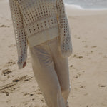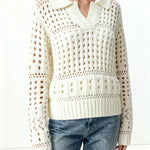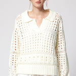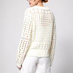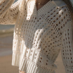 Soft and airy, this collared sweater is crafted in a plush open weave that mimics the look of fine crochet. Perfect for transitional weather, it balances cozy texture with breathable ease—making it the ideal layer for the beach, spring, or fall when you want comfort without heavy warmth
