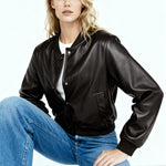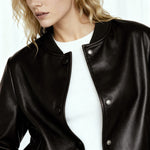 A standout piece in the collection, this bomber is crafted from our Impossibly Soft Vegan Leather—so smooth it feels like butter. Lined with our signature butter satin for an added touch of luxury, it’s finished with leather-covered snaps, a ribbed collar, and cuffs in a timeless bomber silhouette. Elevated yet effortless, it’s the ultimate modern classic.