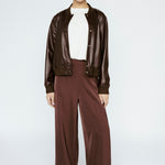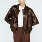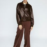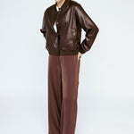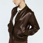 A standout piece in the collection, this bomber is crafted from our Impossibly Soft Vegan Leather—so smooth it feels like butter. Lined with our signature butter satin for an added touch of luxury, it’s finished with leather-covered snaps, a ribbed collar, and cuffs in a timeless bomber silhouette. Elevated yet effortless, it’s the ultimate modern classic.