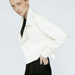 Crafted from the softest vegan leather on the market, this moto-inspired jacket redefines effortless edge with a touch of luxury. Lined with our signature high-quality satin—used in our tops and dresses—it feels as incredible on the skin as it looks.