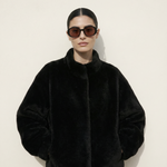 Pleated sleeves add sculptural volume, while a clean snap-front closure keeps the silhouette relaxed yet polished. The perfect layer for transitional weather, this jacket balances comfort with conscious design.