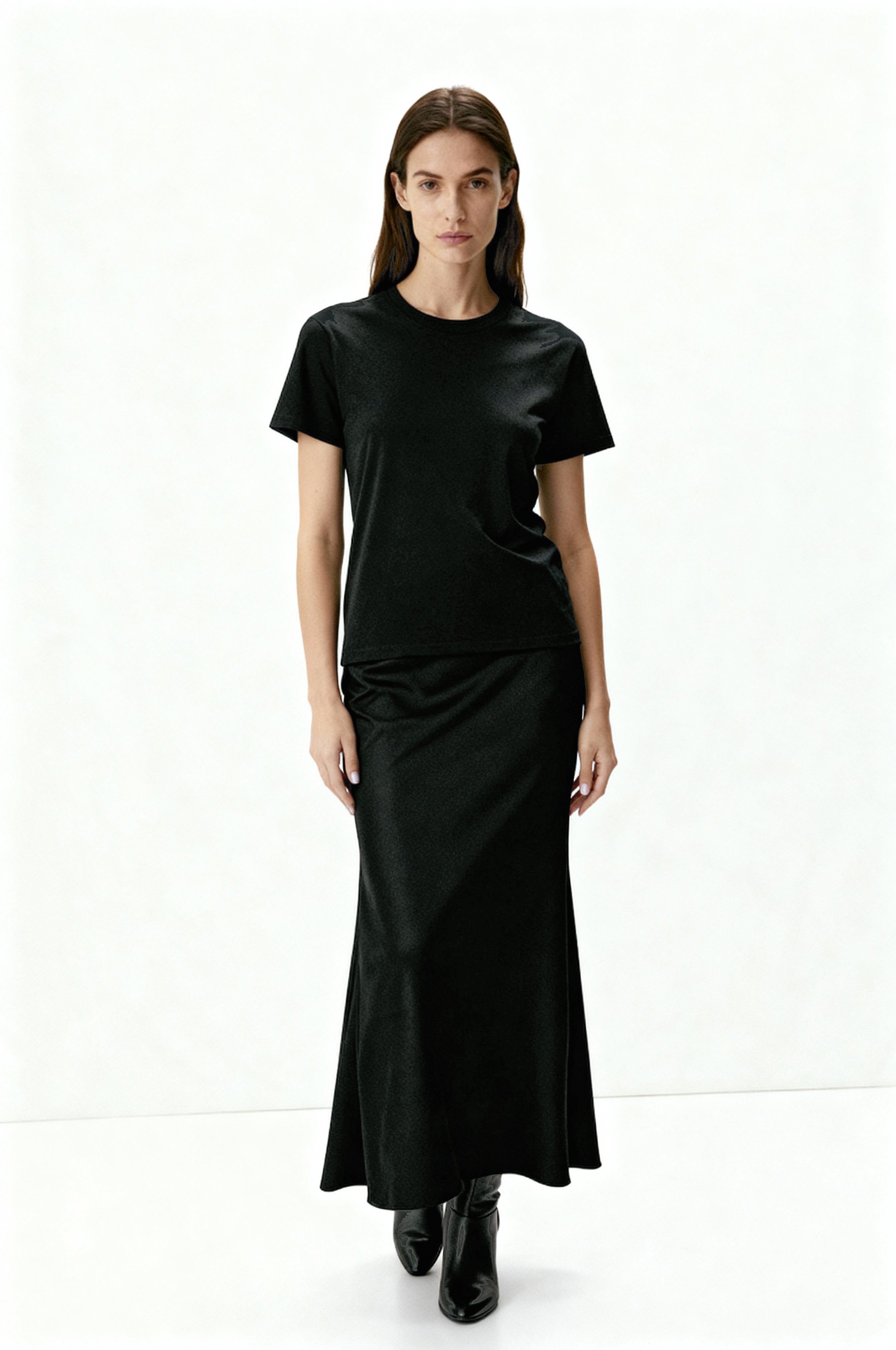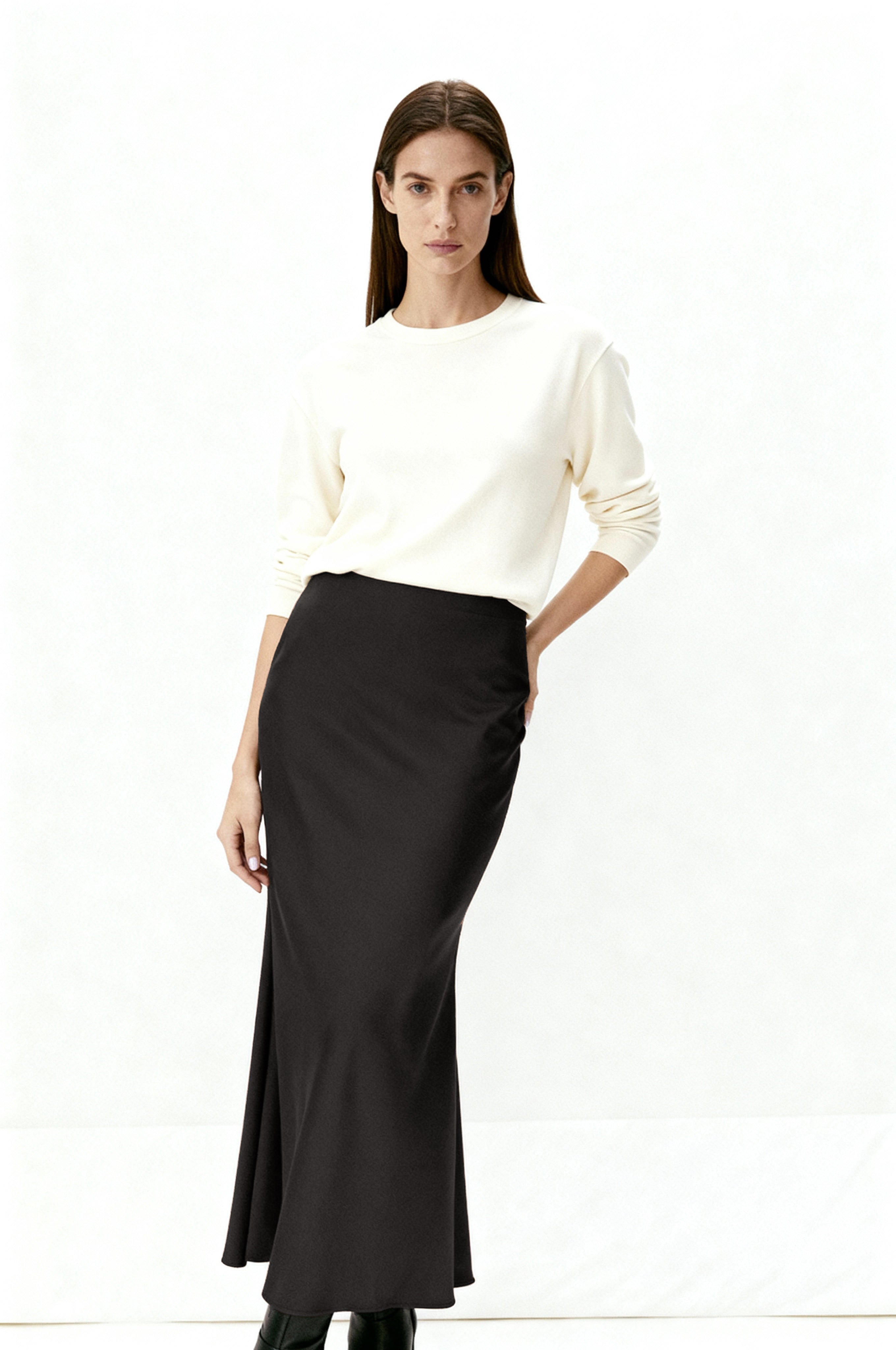 A timeless wardrobe staple, this bias-cut skirt is crafted from our signature butter satin for a fluid drape and subtle sheen. Designed with a concealed elastic waistband for a smooth, comfortable fit, it skims the body with effortless elegance.