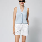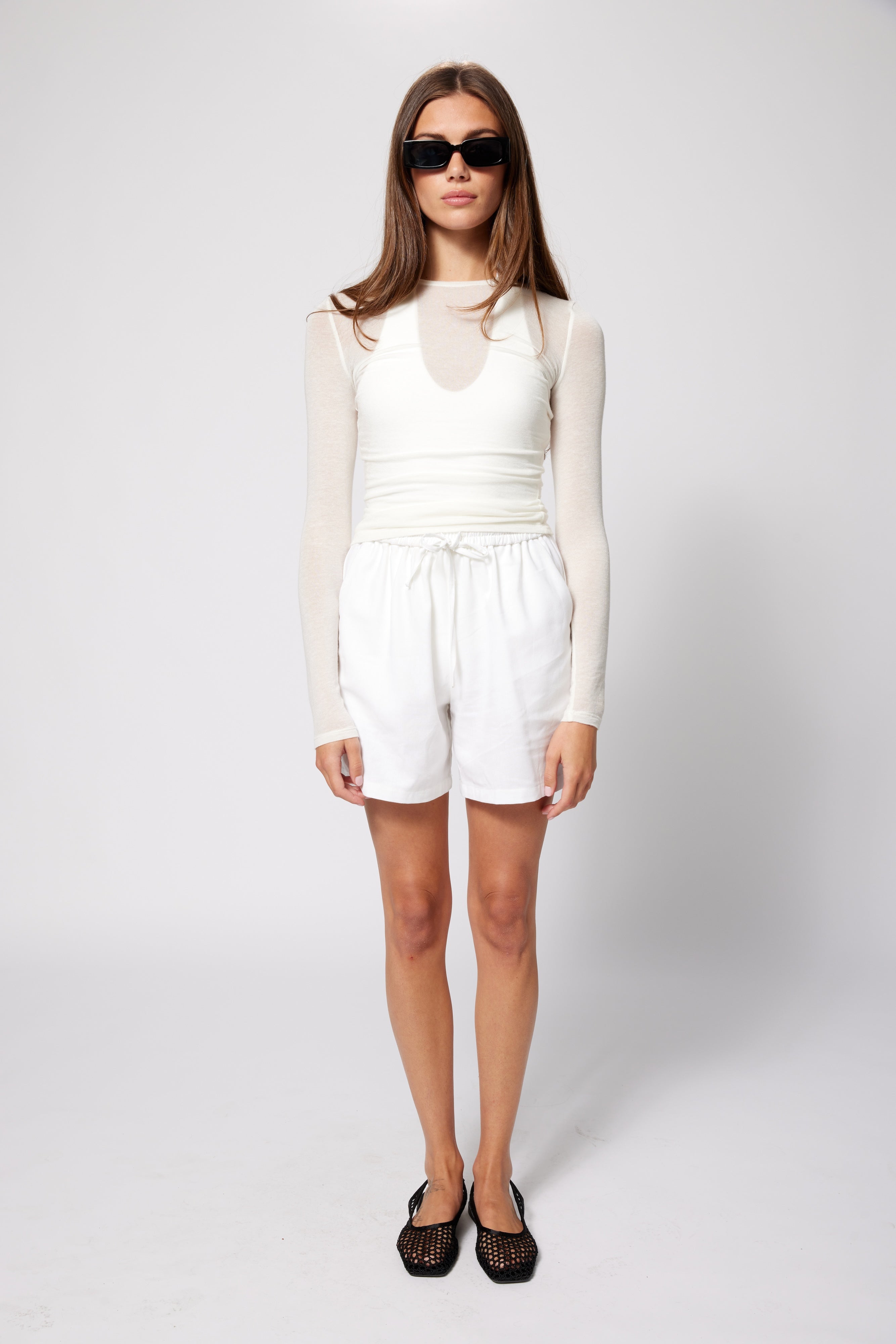 The elastic waistband ensures all-day comfort, while the two front pockets add a touch of functionality to this laid-back staple. From lazy mornings at home to breezy seaside afternoons, these shorts redefine casual elegance for the modern wardrobe.