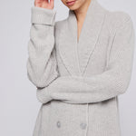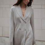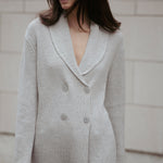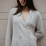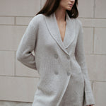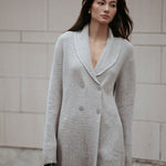 Embrace luxury with the Aspen Sweater, a cozy statement piece with endless styling possibilities. Designer Amanda Maria’s favourite, this sweater is crafted from an incredibly soft, lightweight cashmere blend, elevating cozy cottage chic to a new level. The relaxed yet chic fit is complemented by a sophisticated shawl collar with an intricate knit pattern. Featuring a double-breasted button detail, the Aspen Sweater effortlessly transitions from casual to dressed-up. Its longer length offers versatile styling options, whether worn as a sweater dress with mini skirts or layered with your favourite pants for added warmth.