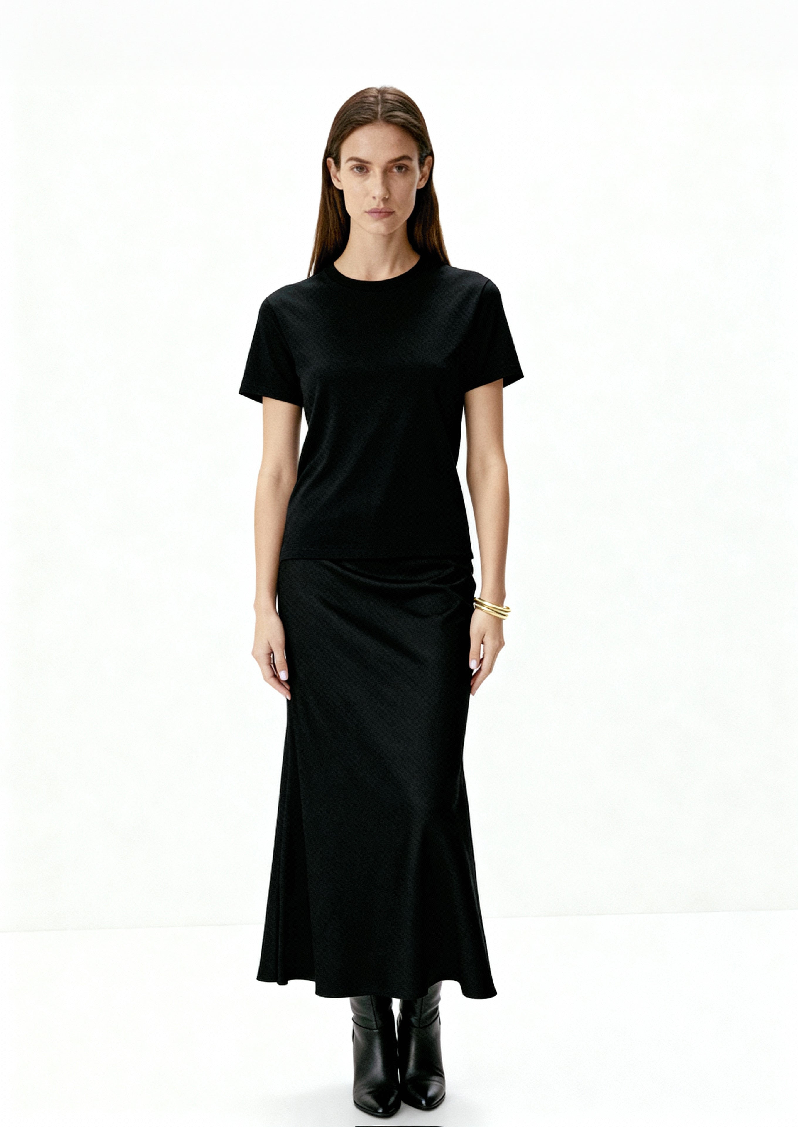 Butter Satin Bias Cut Skirt Black