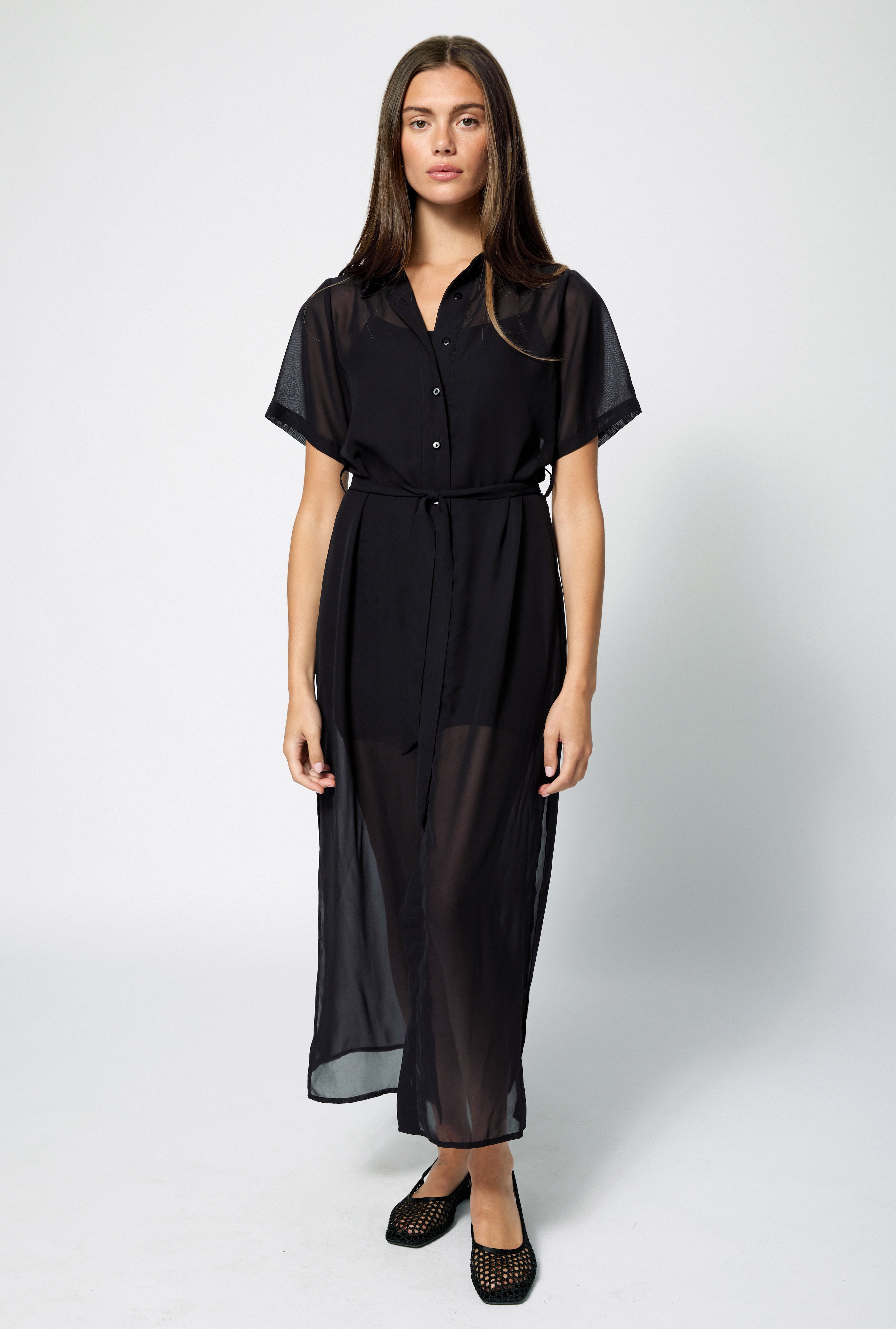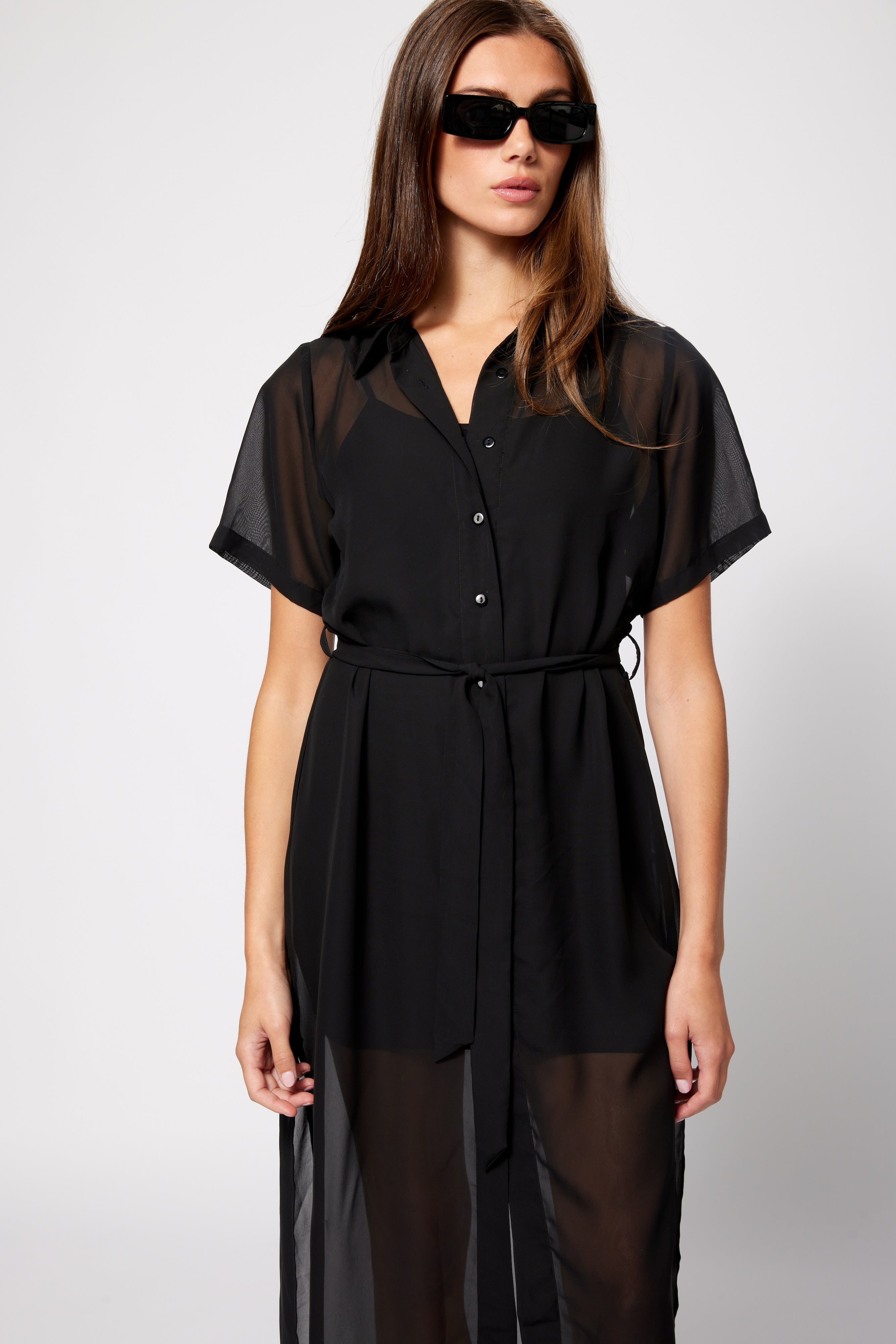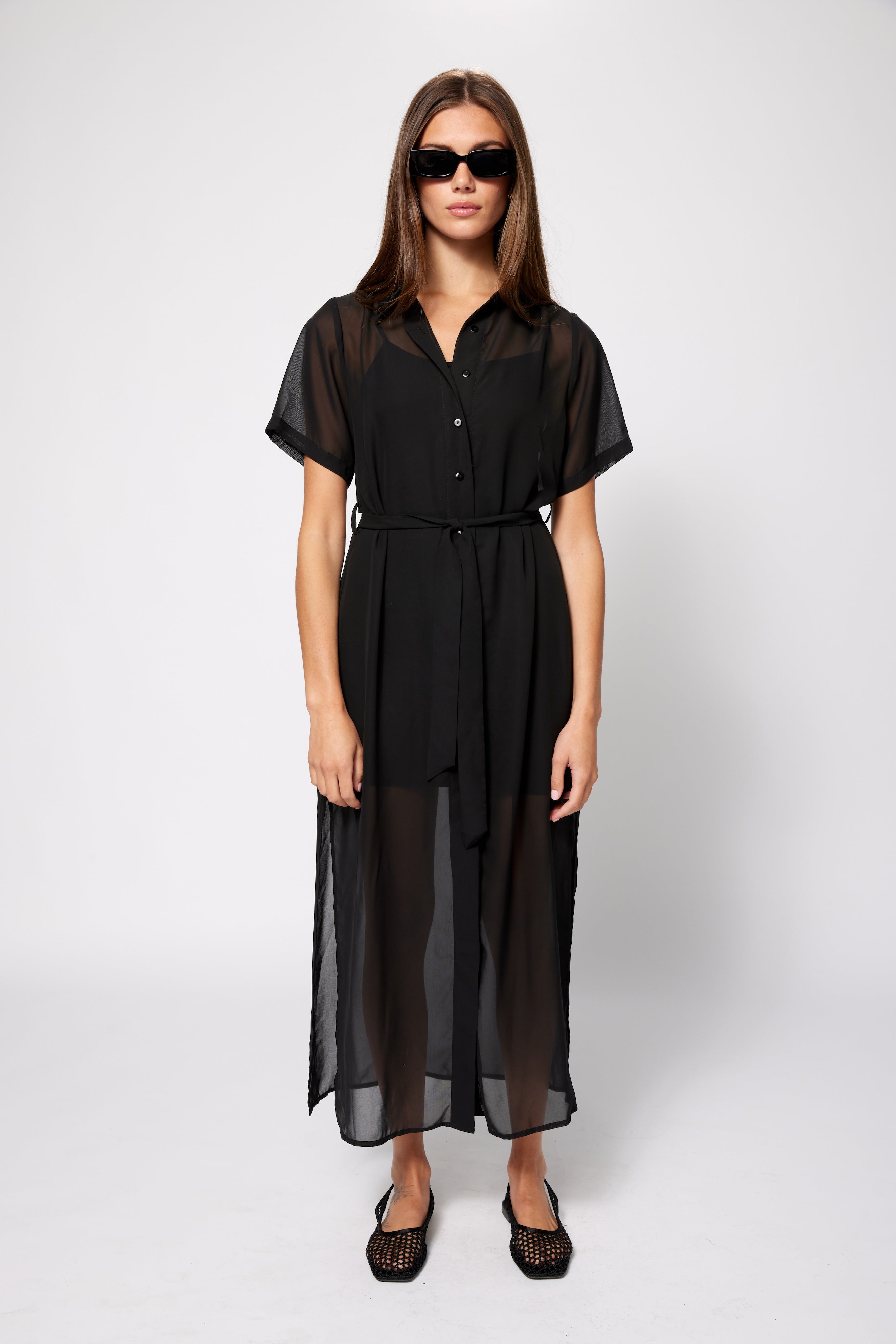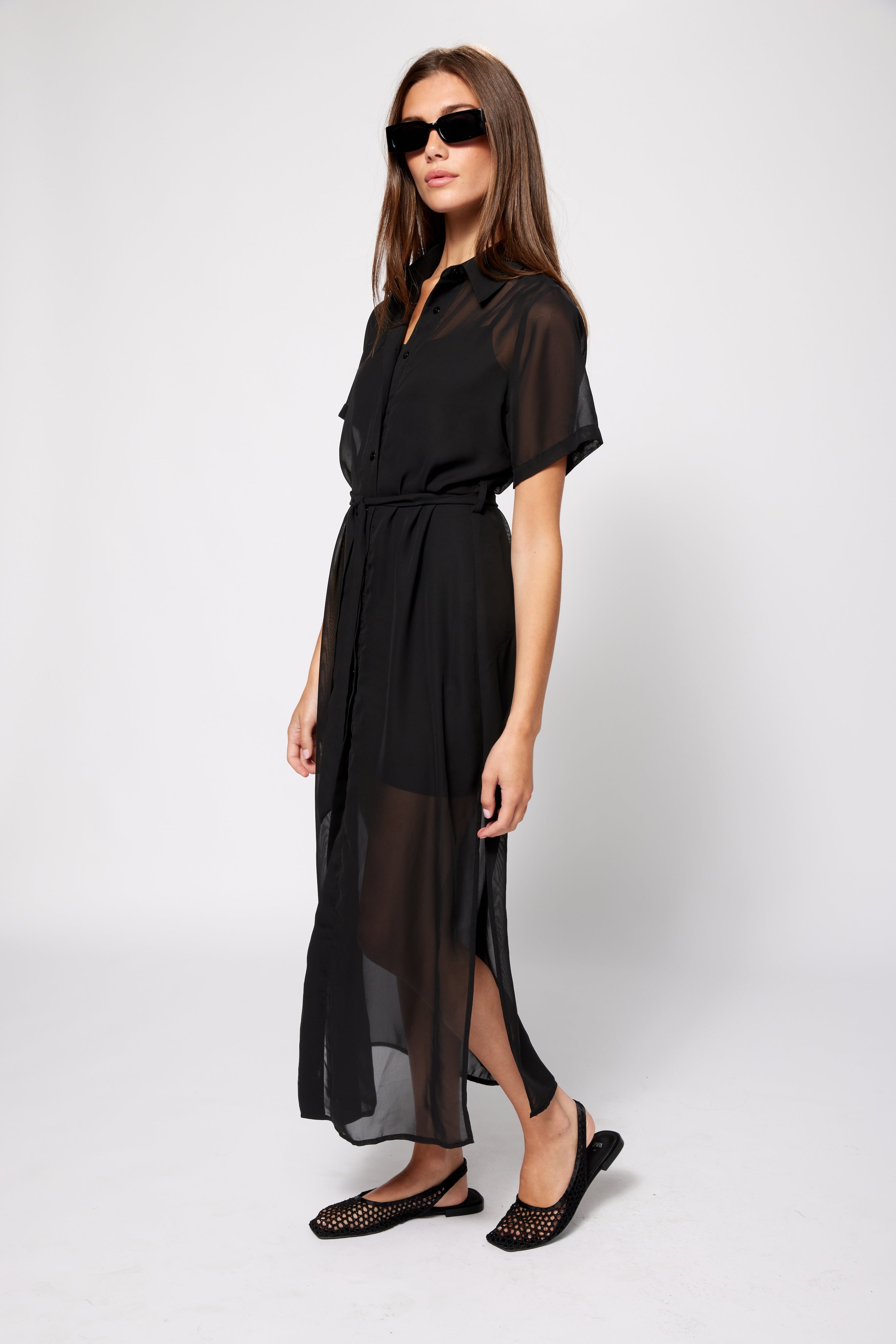 Effortlessly elegant and delightfully versatile, this lightweight chiffon dress is your new go-to for spring, summer, and beyond. Made from a soft, semi-sheer chiffon, it flows beautifully with every step, featuring side slits for added movement and a waist tie to cinch the perfect silhouette.