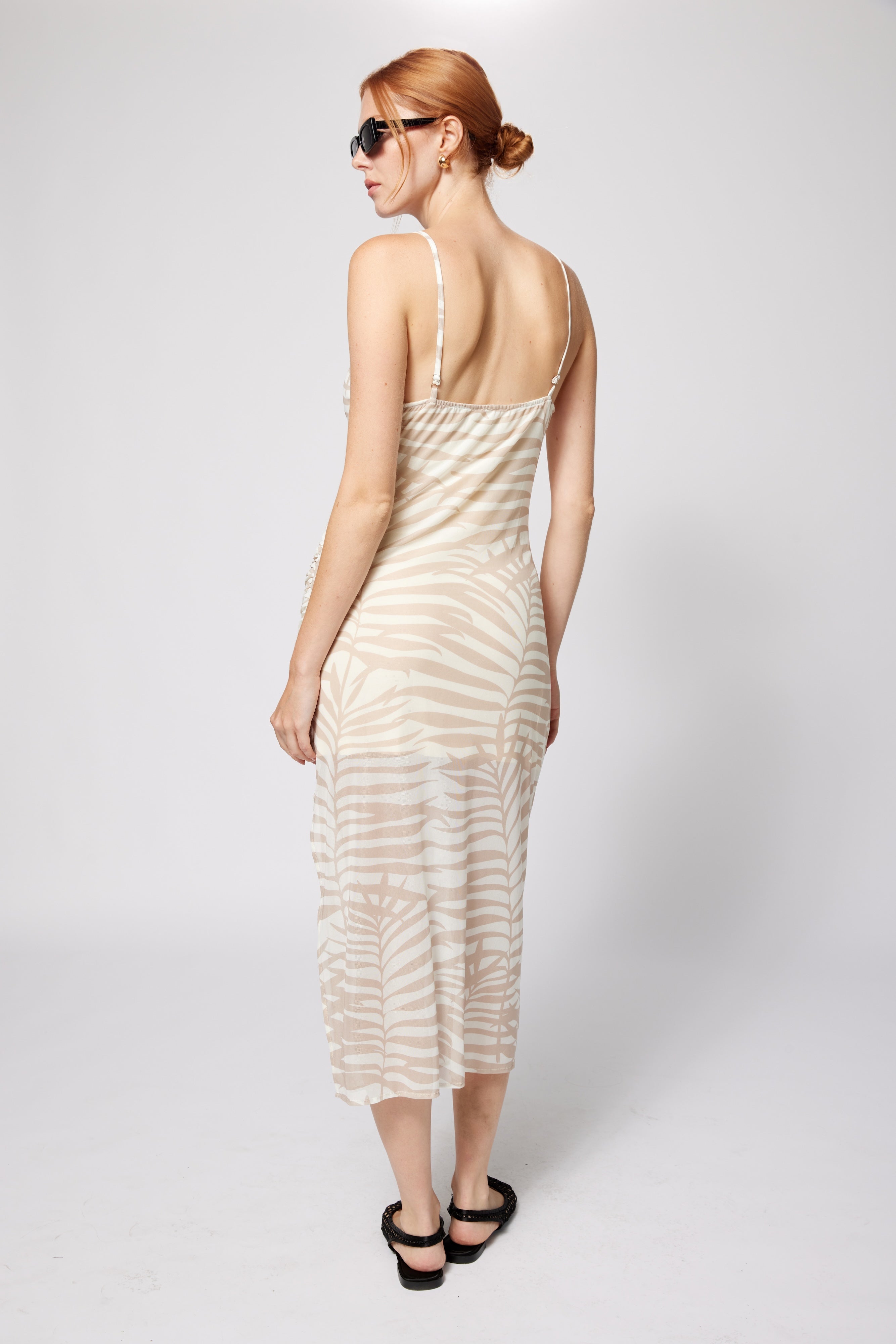 Mesh Dress Sand Palm Print