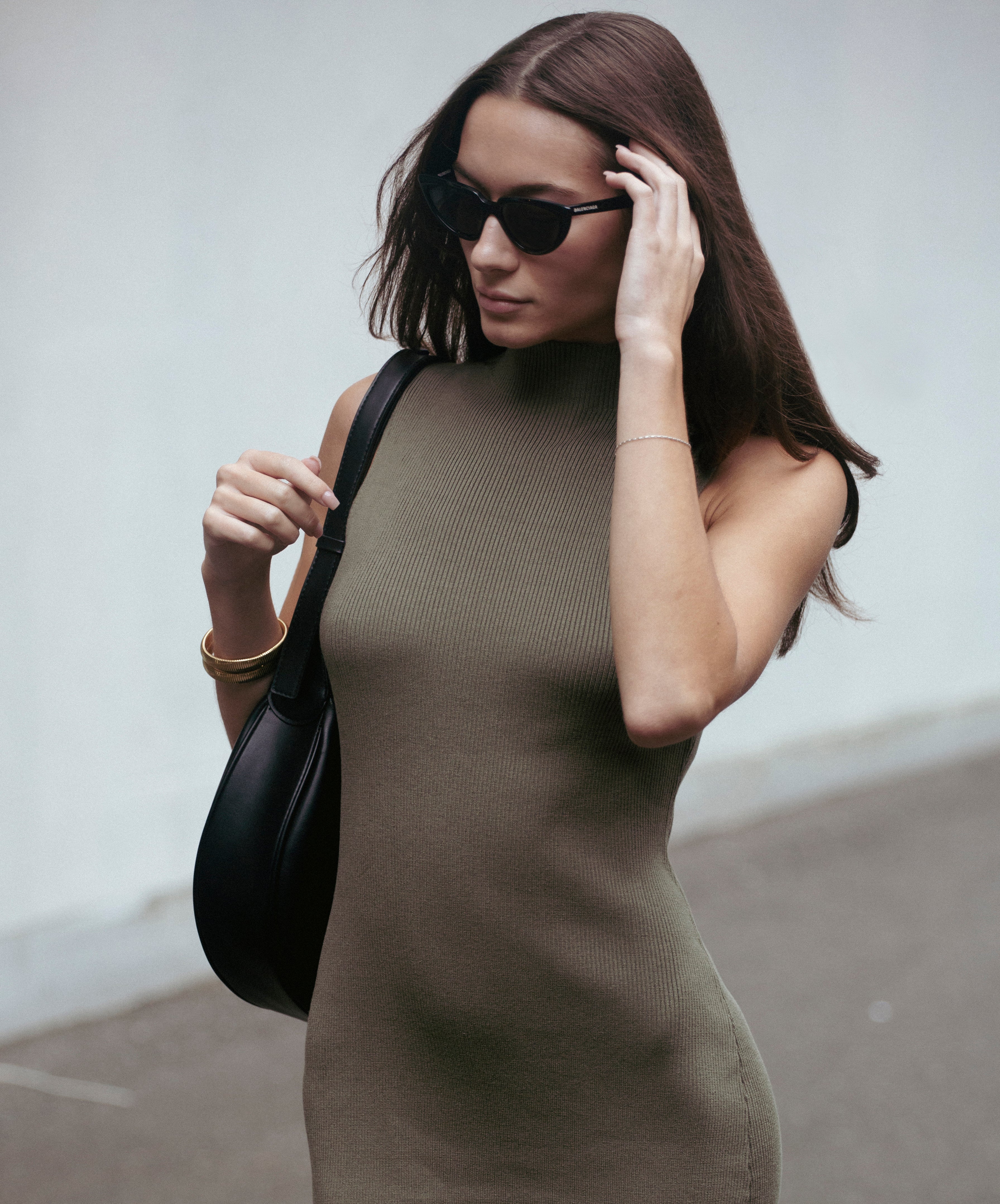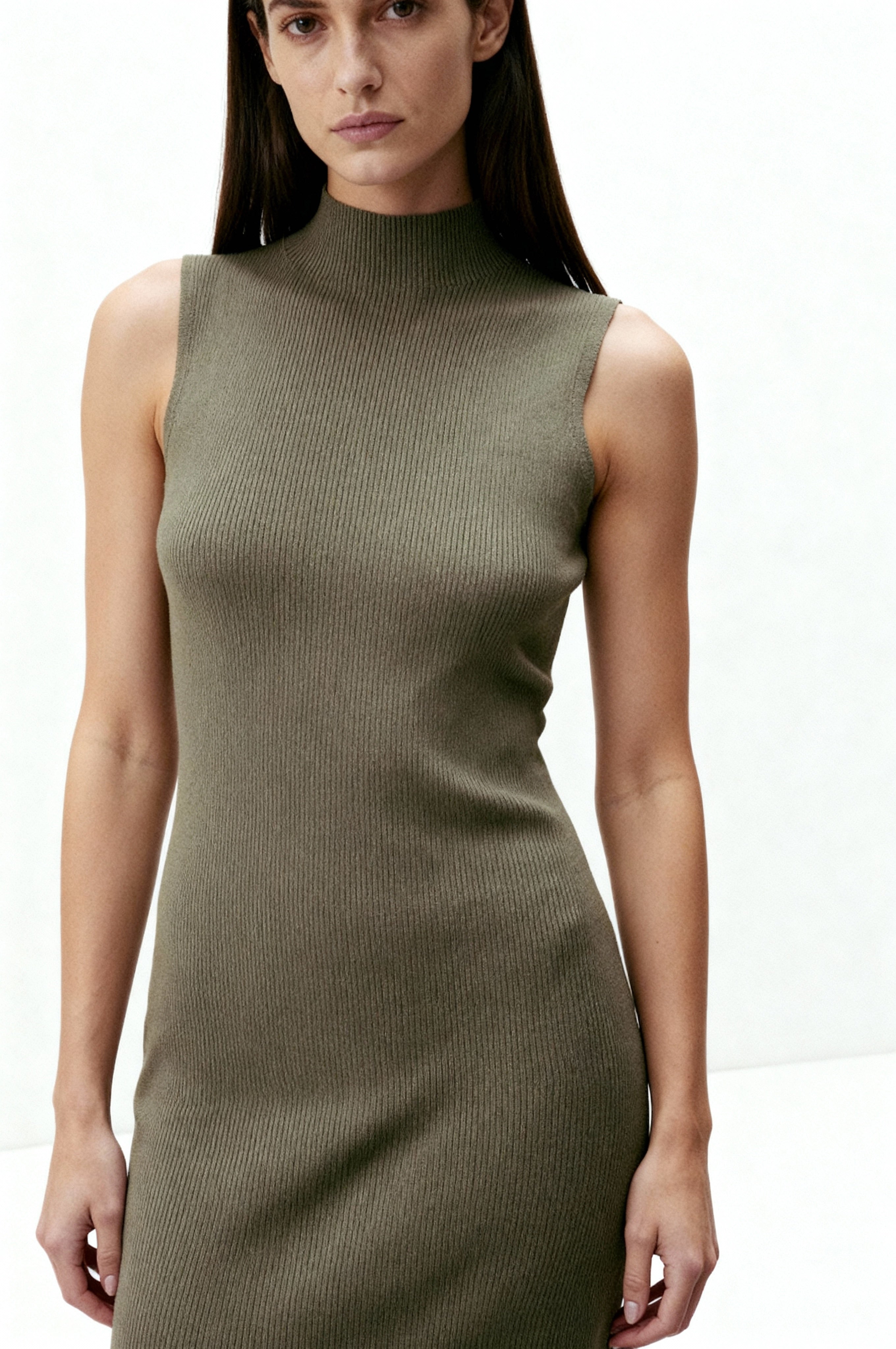 Discover timeless elegance with our classic ribbed knit dress. Featuring a mock neck and bra-friendly silhouette, this dress is crafted from premium modal knit with tight ribs, ensuring it’s not see-through and drapes beautifully over your shape without clinging. The raw edge neckline adds a touch of texture to the hemlines. Perfect for layering under blazers or pairing with sneakers for a casual look, this dress combines ultimate comfort with versatility, making it ideal for both lounging at home and stylish everyday wear.