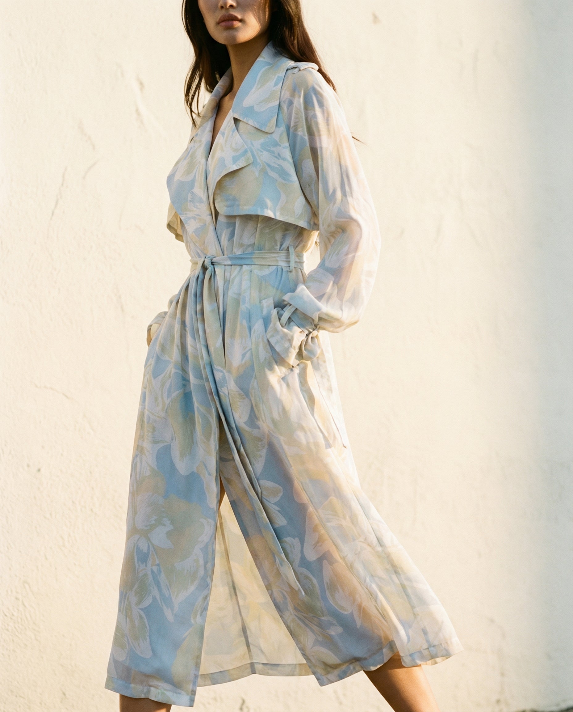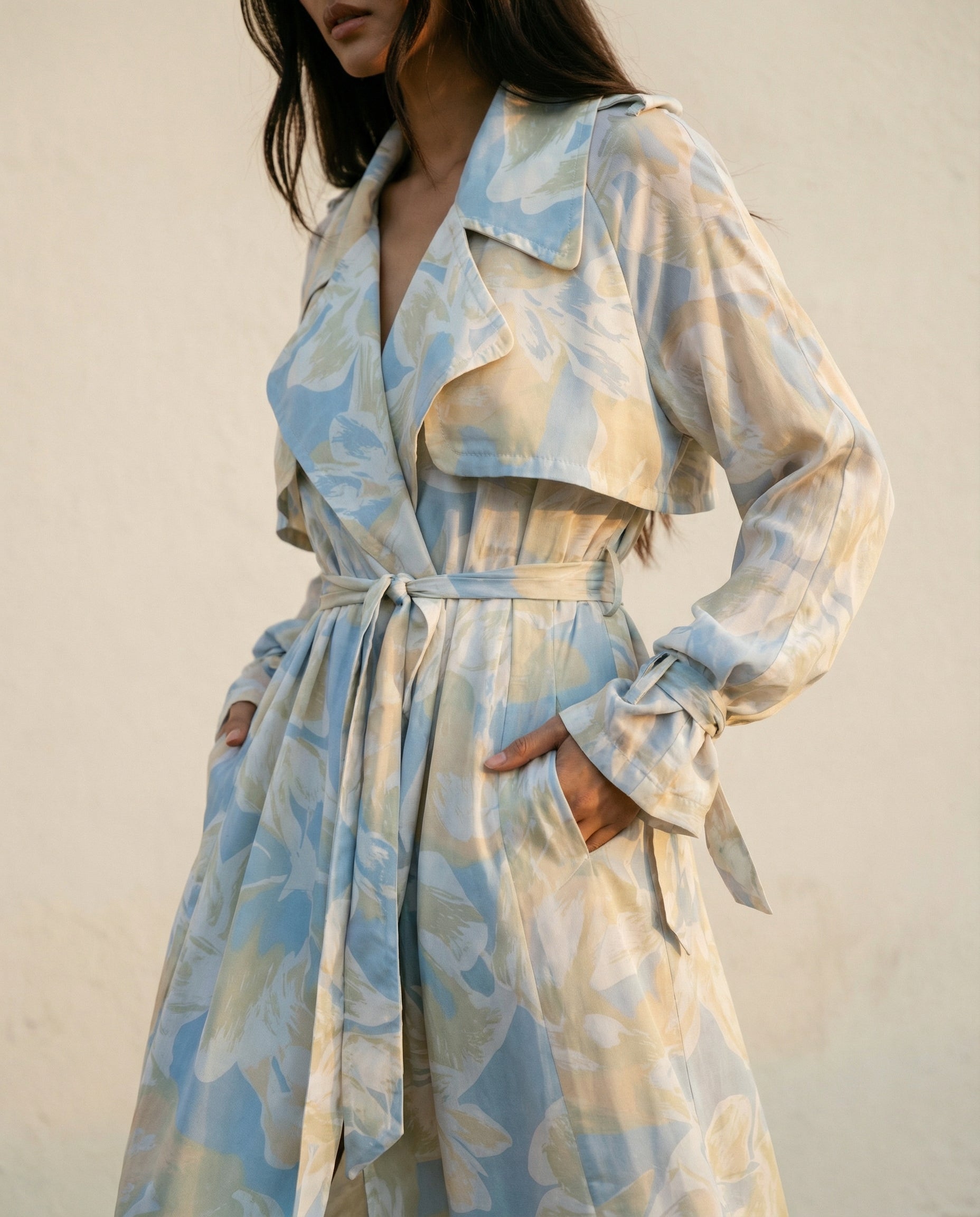 Chiffon Trench Celeste Print