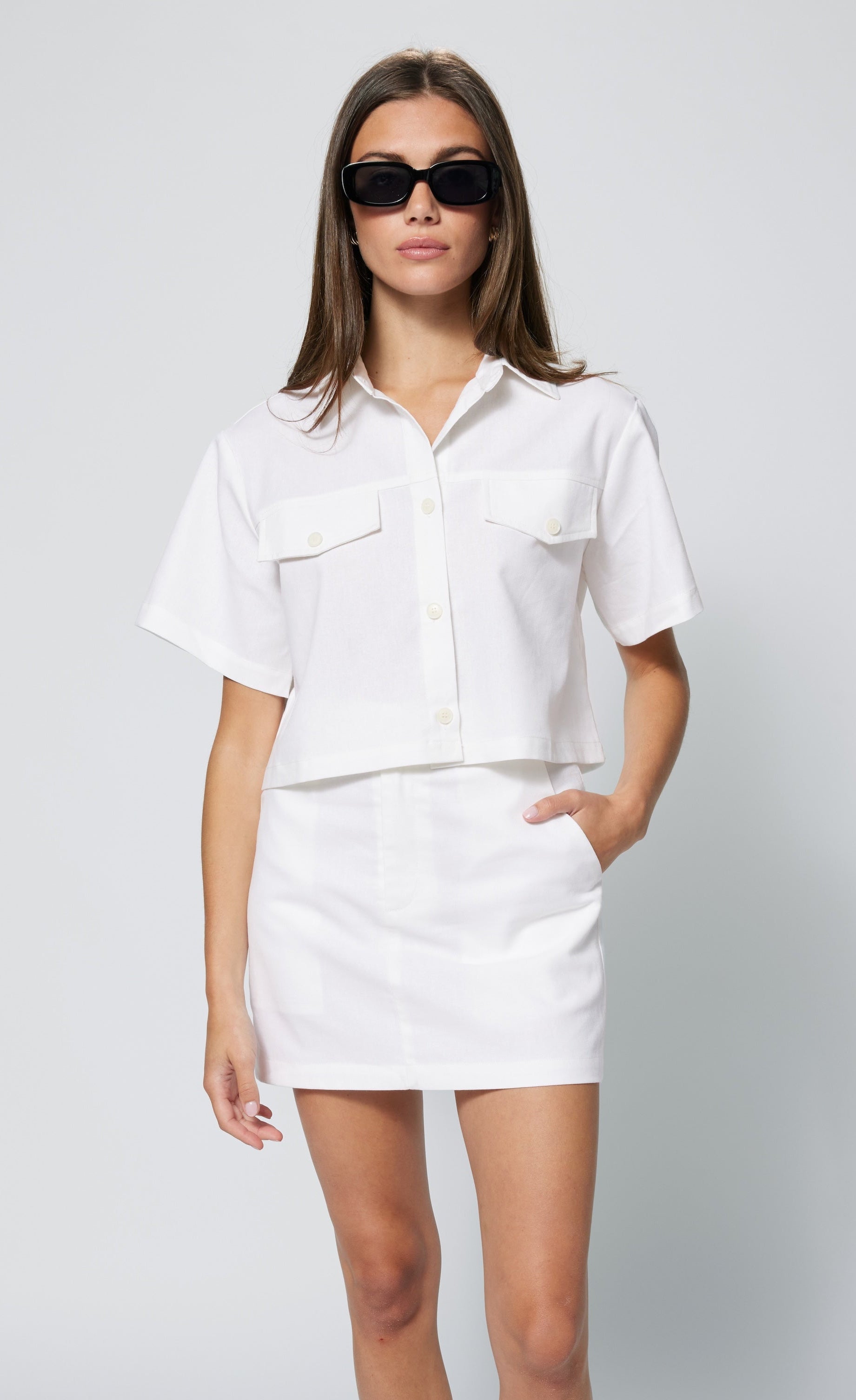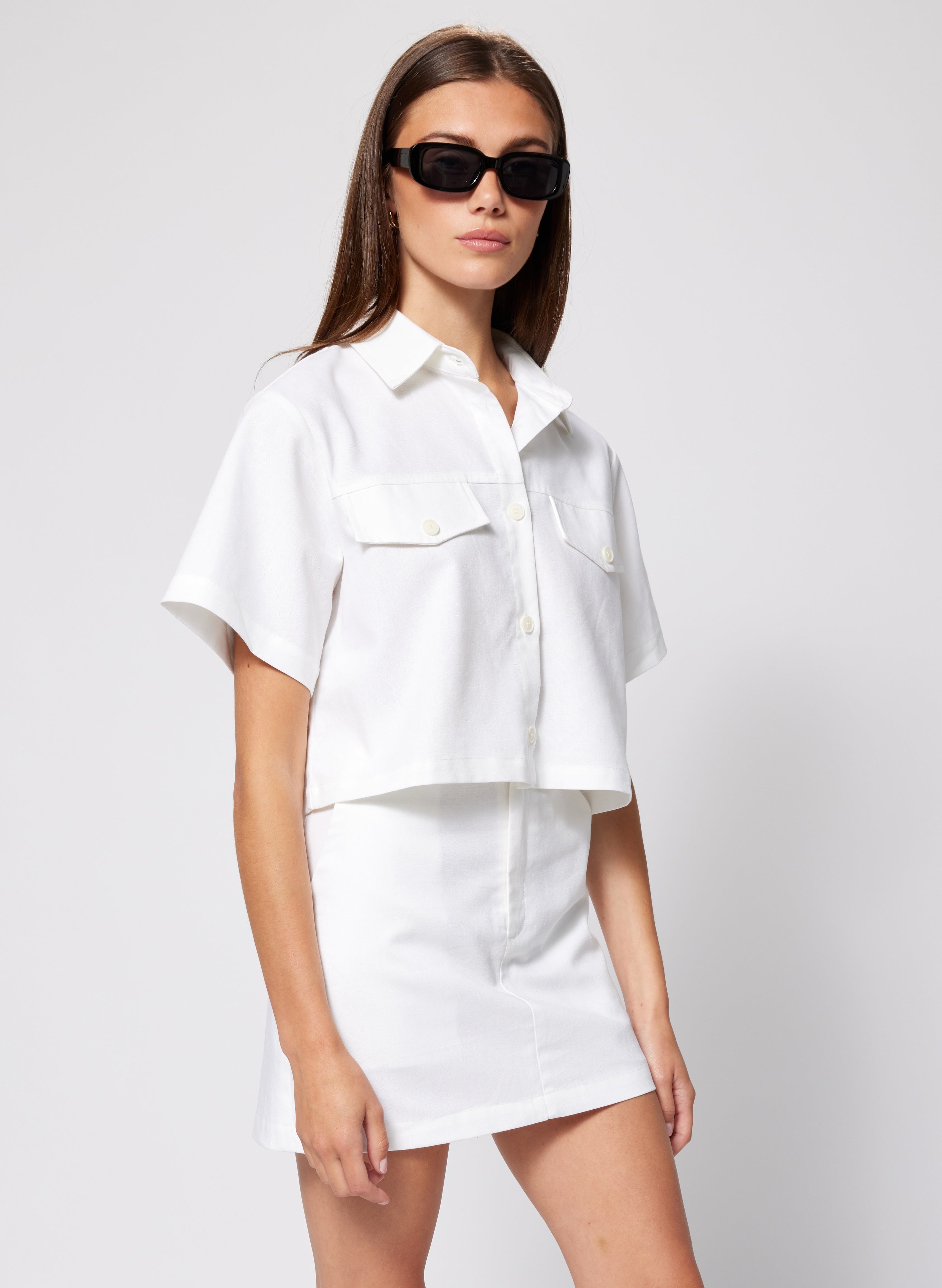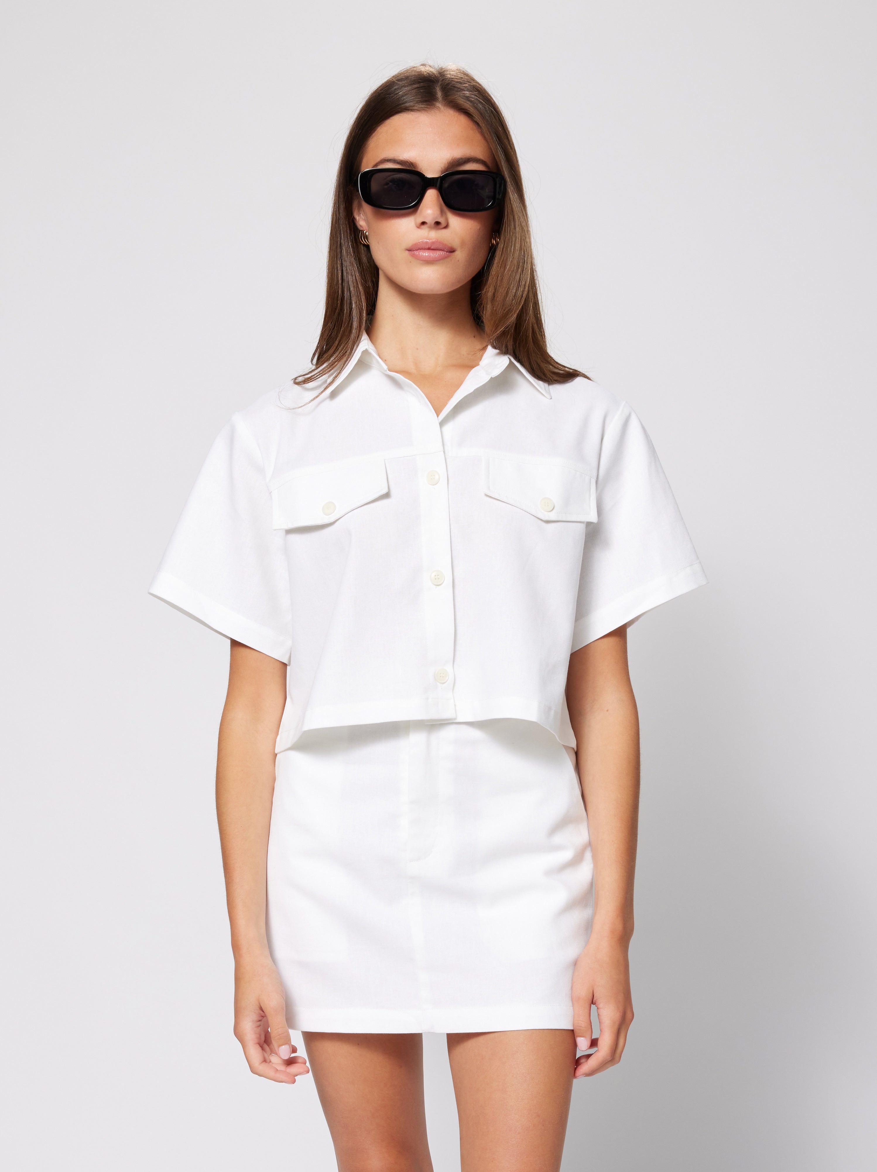 Wear it open as a striking layer over cocktail dresses, or style it with its matching set skirt as shown for a sophisticated, polished look. Not a full crop this style ends below the waistline, this timeless piece is thoughtfully tailored to flatter while adding a touch of effortless luxury to your spring and summer ensembles.