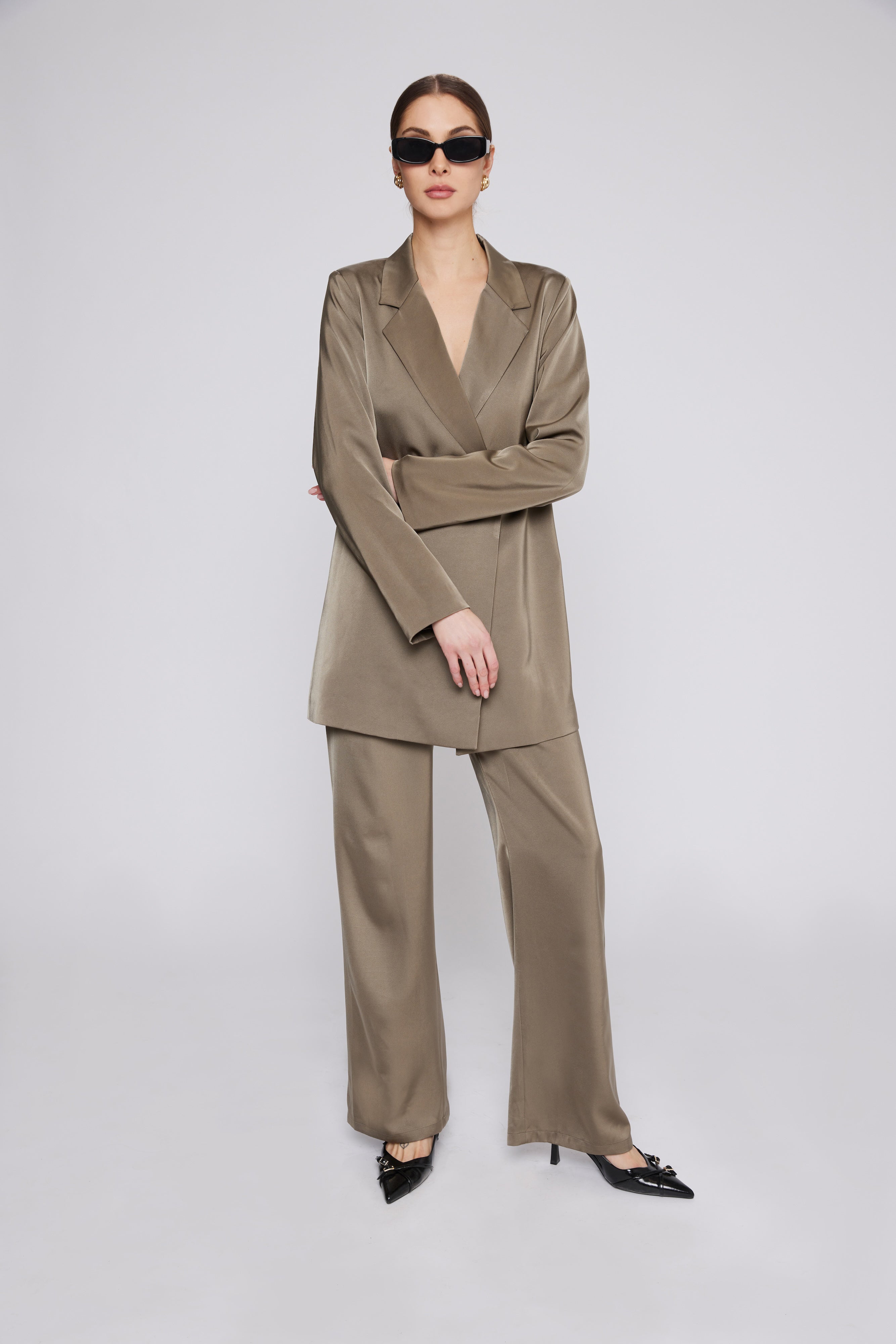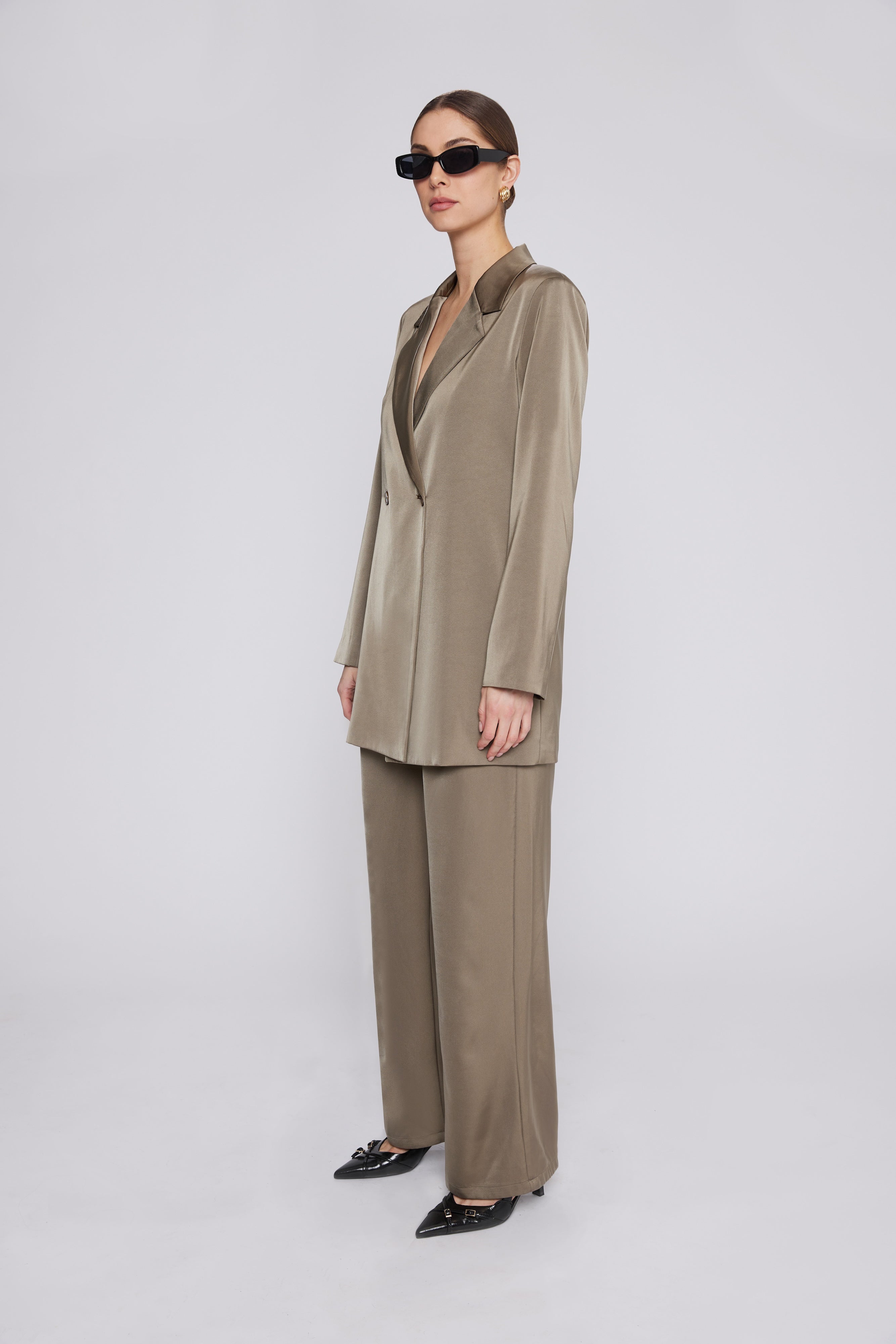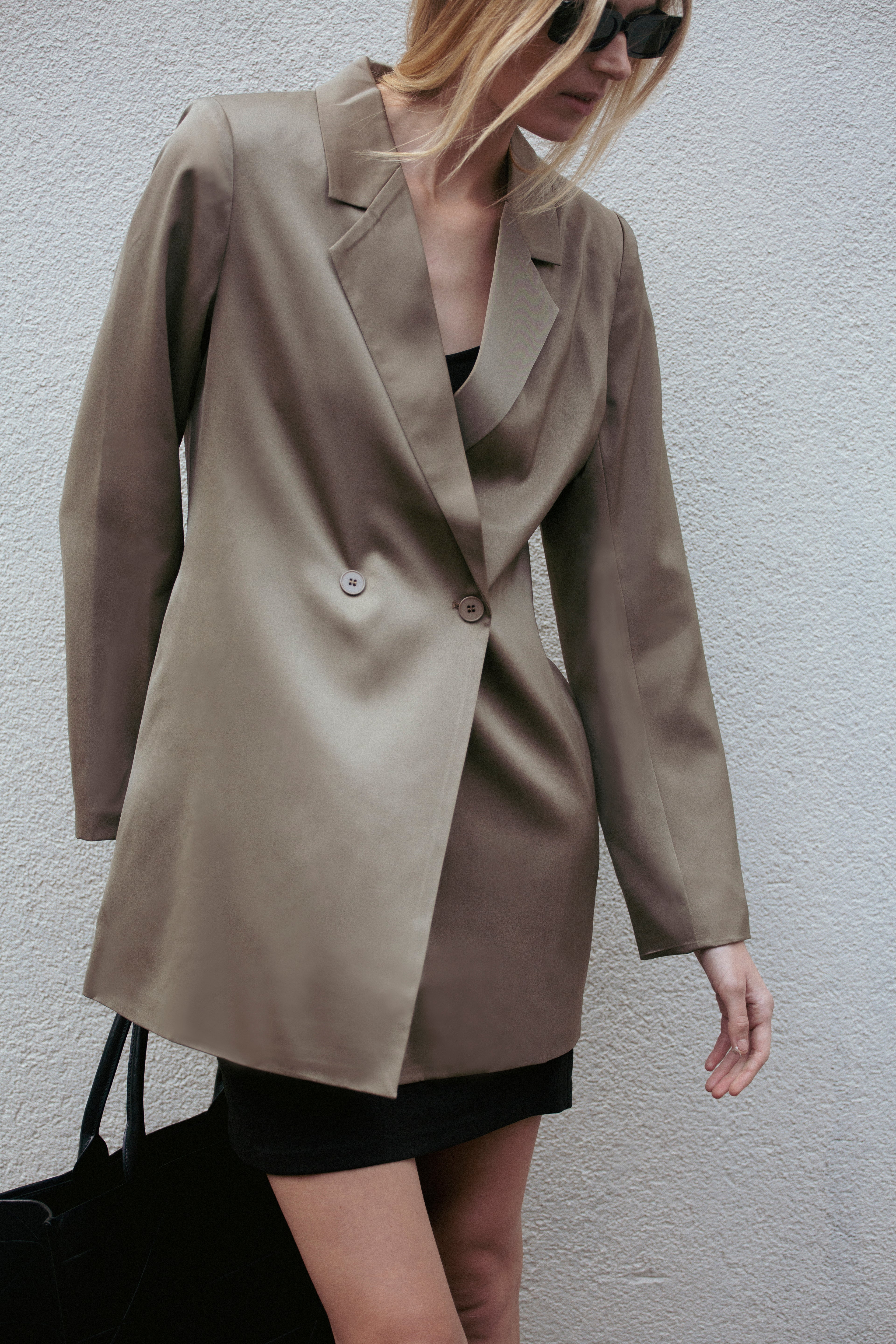 Elevate your wardrobe with the Essentials Blazer—a statement piece crafted to perfection. This impeccably tailored satin blazer combines timeless sophistication with a relaxed silhouette. Made from buttery soft satin that catches the light and drapes beautifully, it’s lined in the same luxurious fabric for a seamless finish inside and out. Featuring sleek double-breasted buttons and invisible inseam pockets, this blazer maintains a minimalistic, polished look. Dress it down with denim for chic city days or pair it with our matching satin bottoms for an unforgettable ensemble.