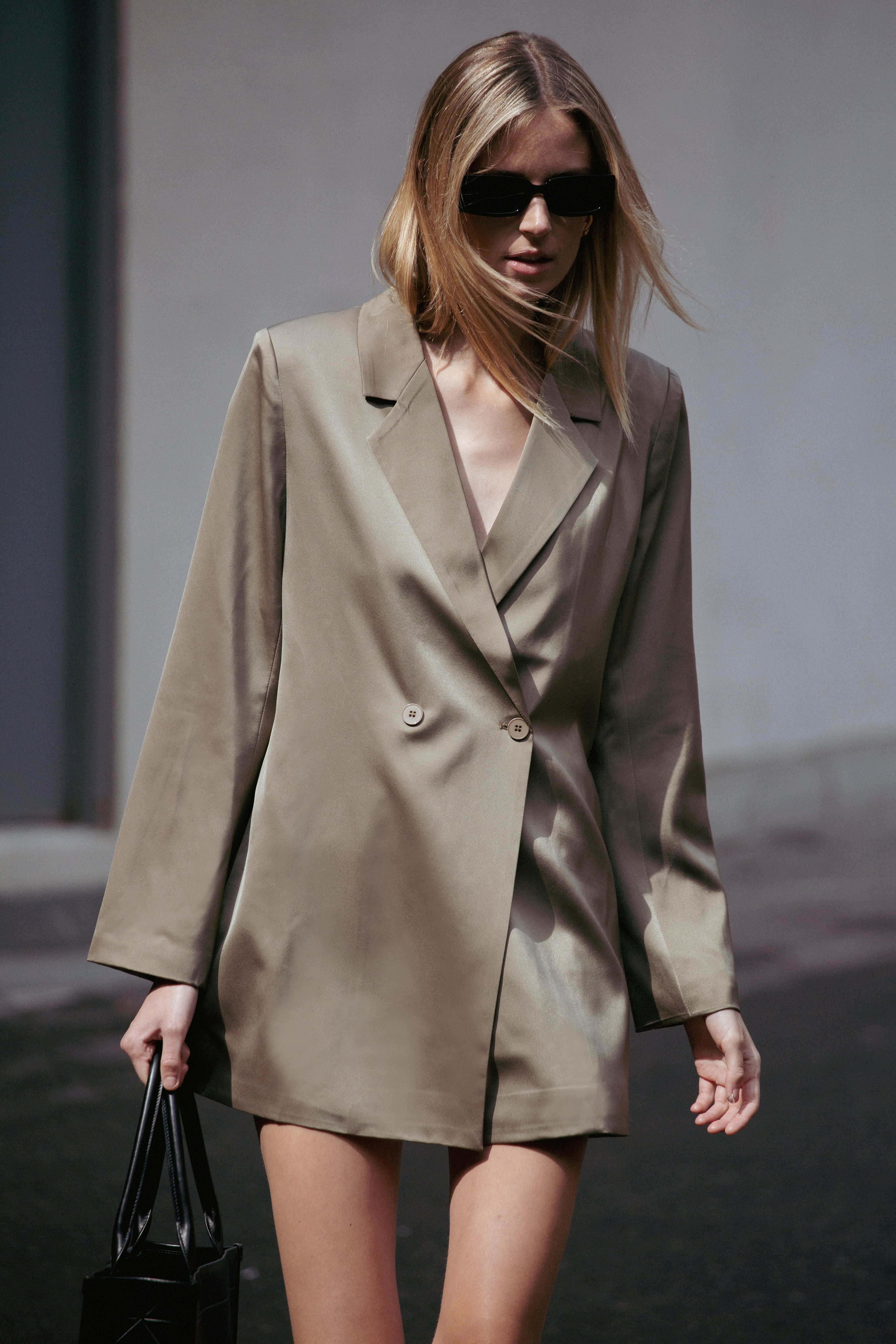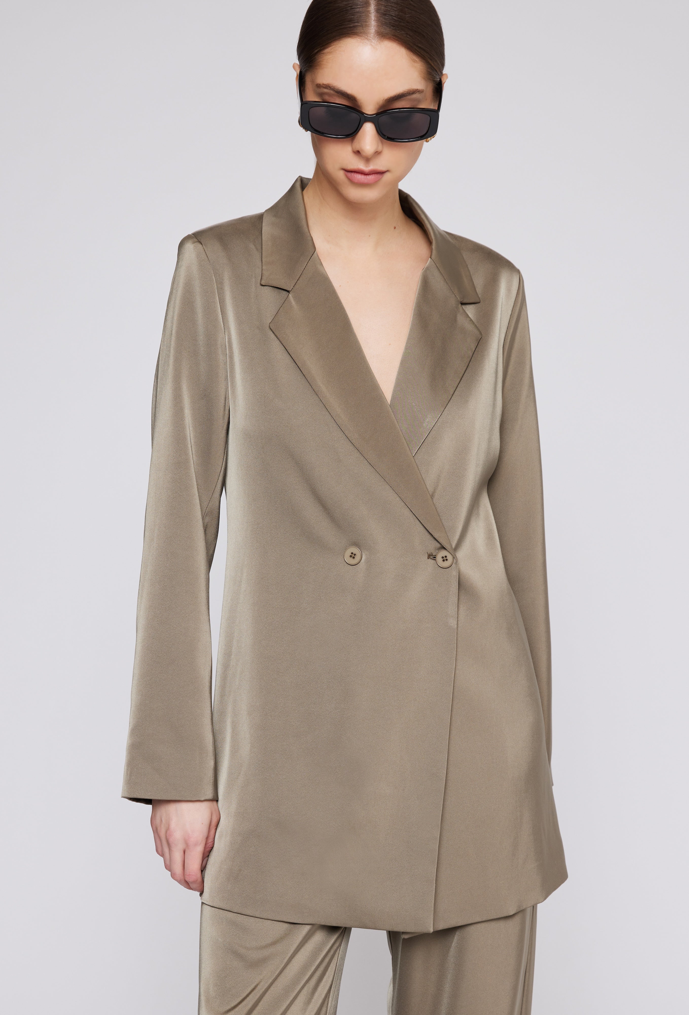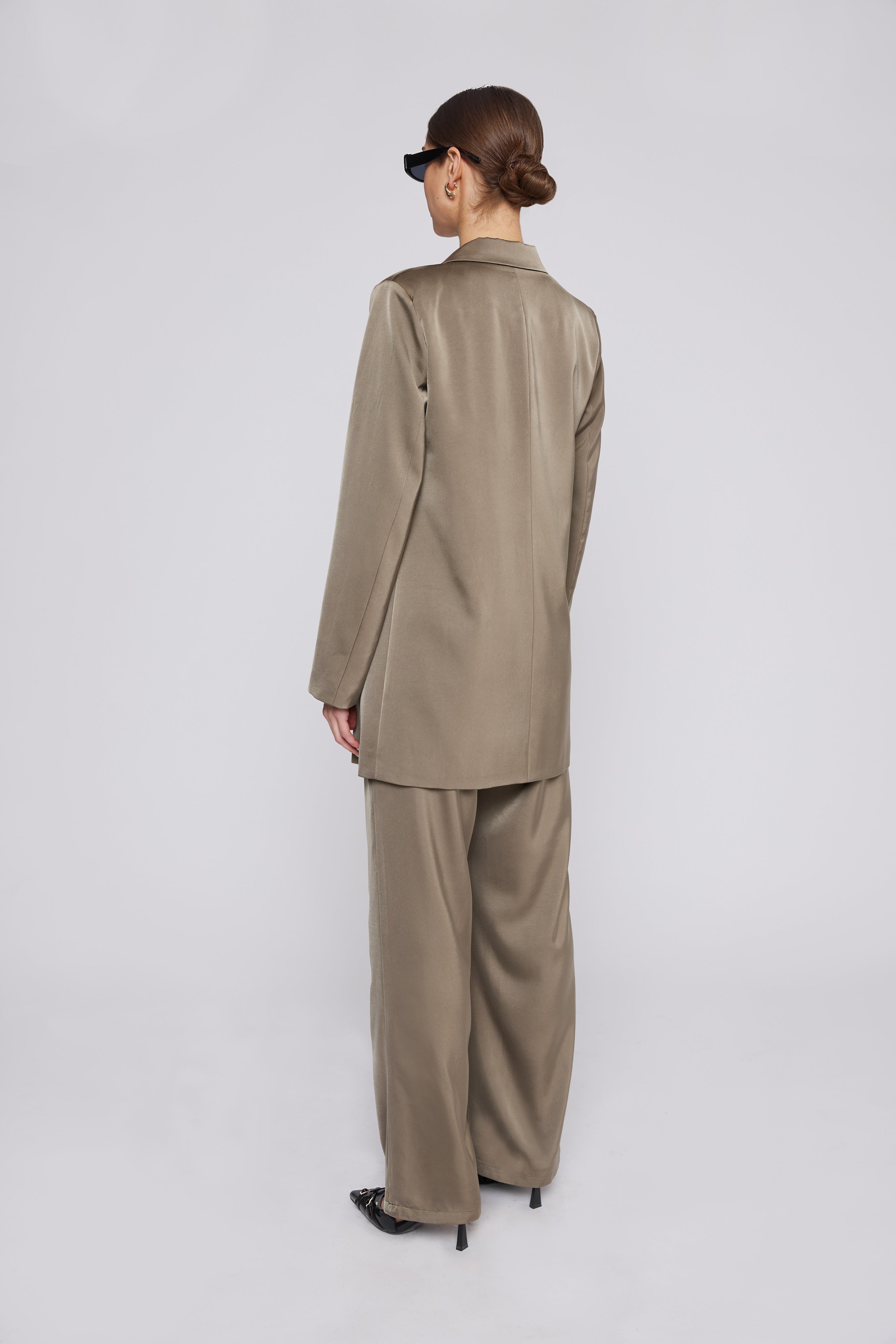 Elevate your wardrobe with the Essentials Blazer—a statement piece crafted to perfection. This impeccably tailored satin blazer combines timeless sophistication with a relaxed silhouette. Made from buttery soft satin that catches the light and drapes beautifully, it’s lined in the same luxurious fabric for a seamless finish inside and out. Featuring sleek double-breasted buttons and invisible inseam pockets, this blazer maintains a minimalistic, polished look. Dress it down with denim for chic city days or pair it with our matching satin bottoms for an unforgettable ensemble.