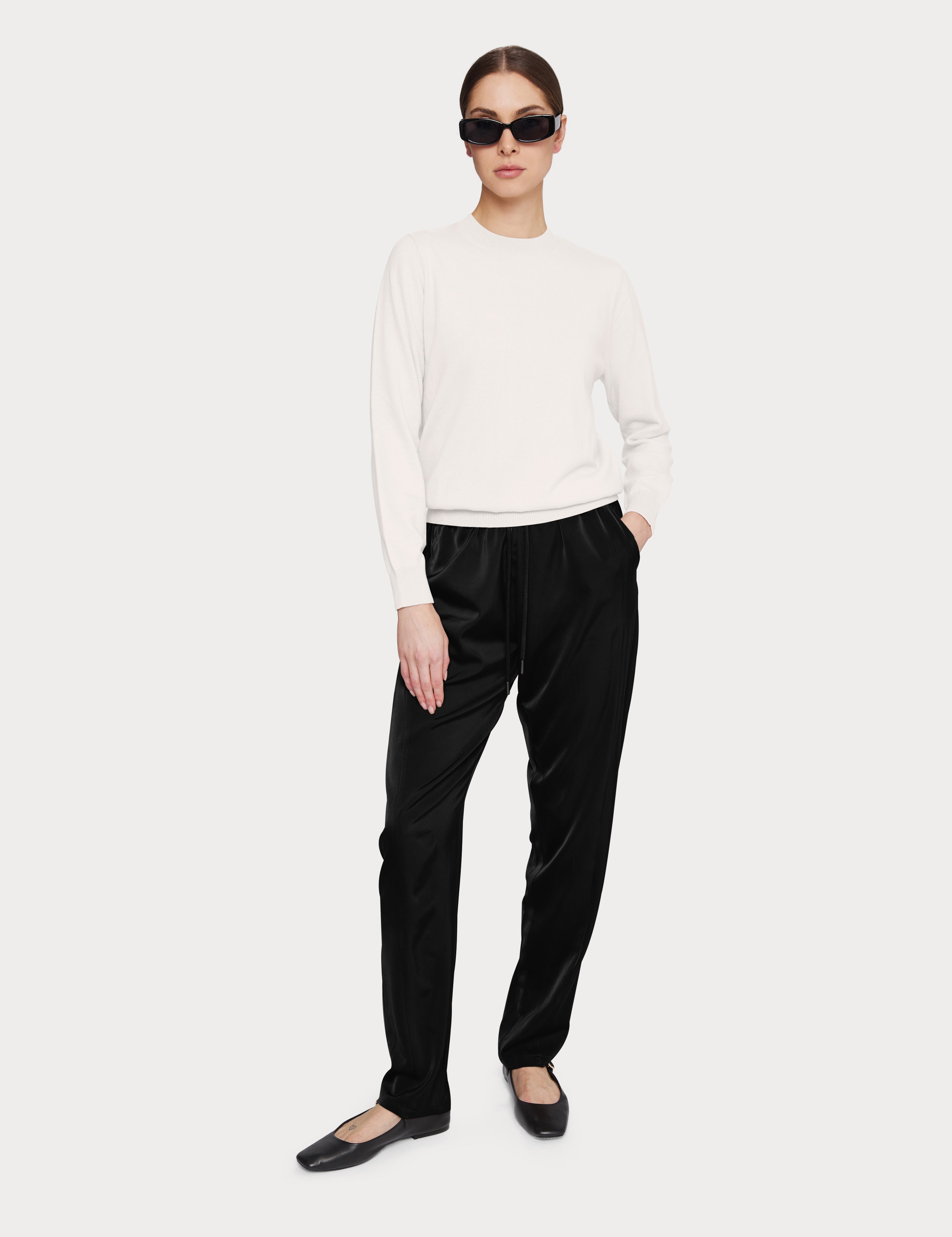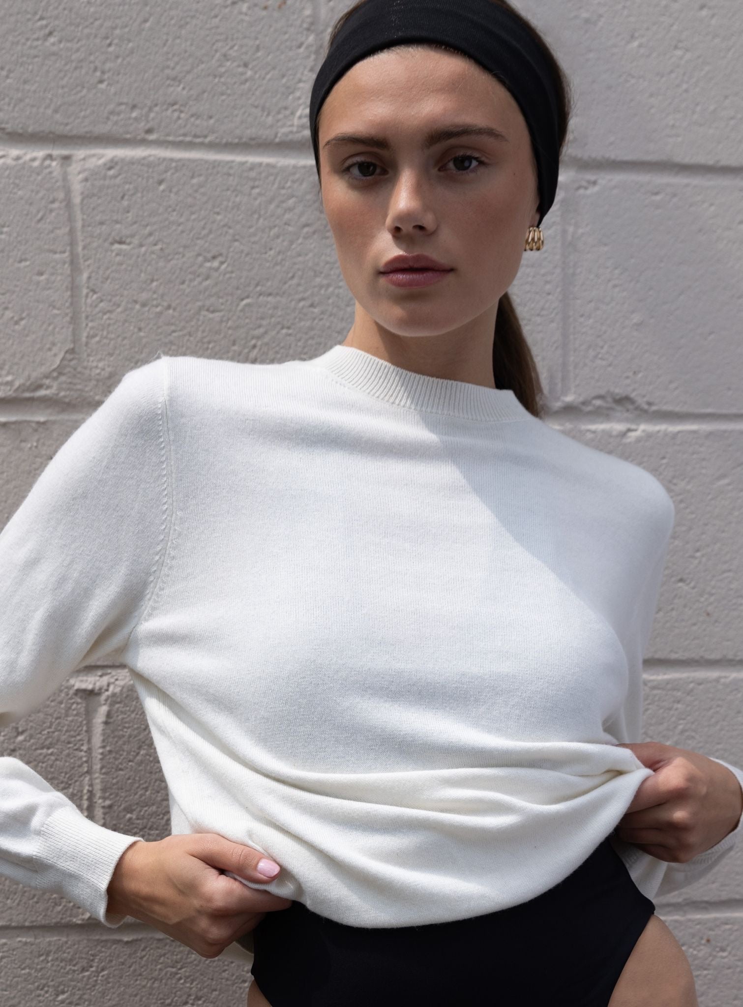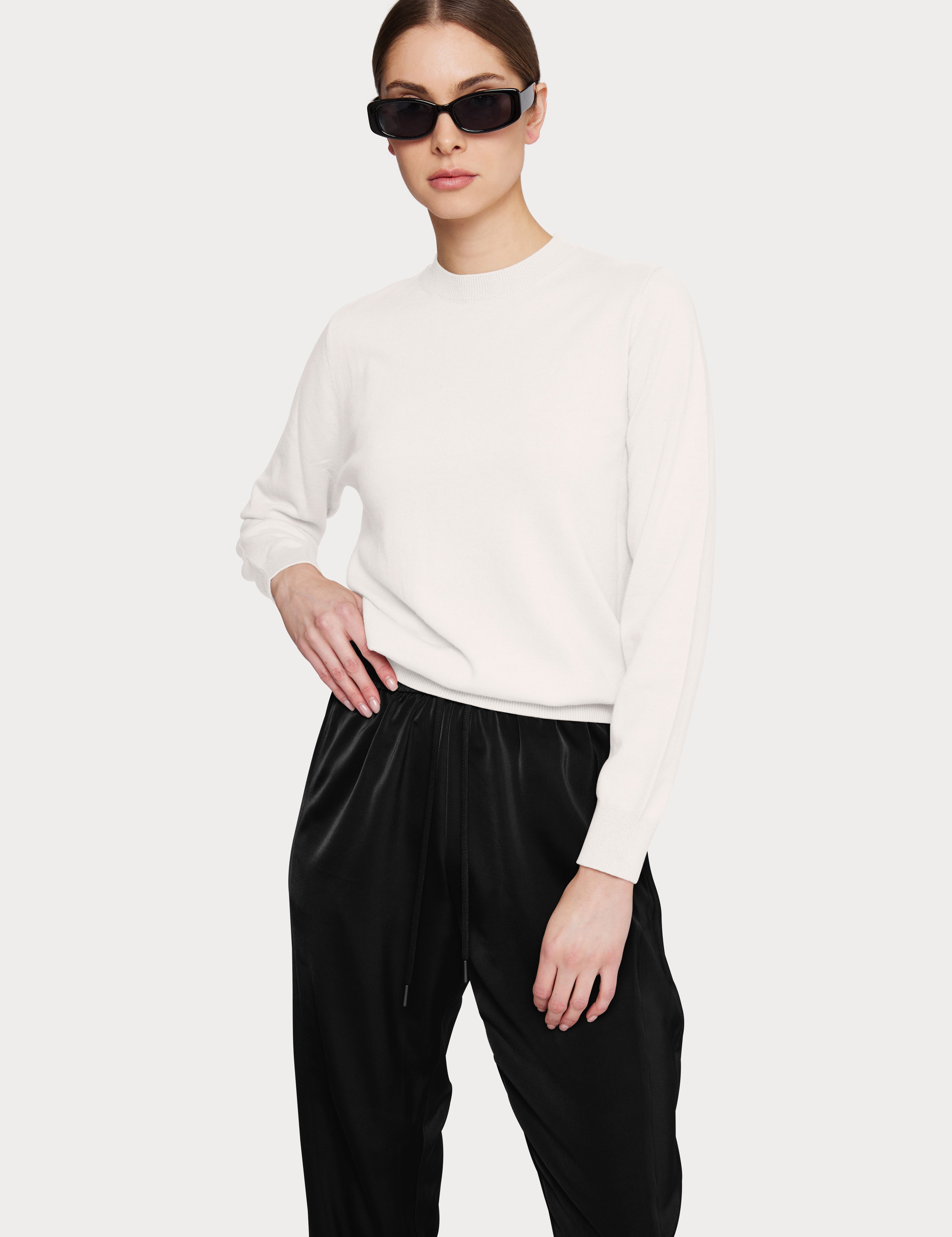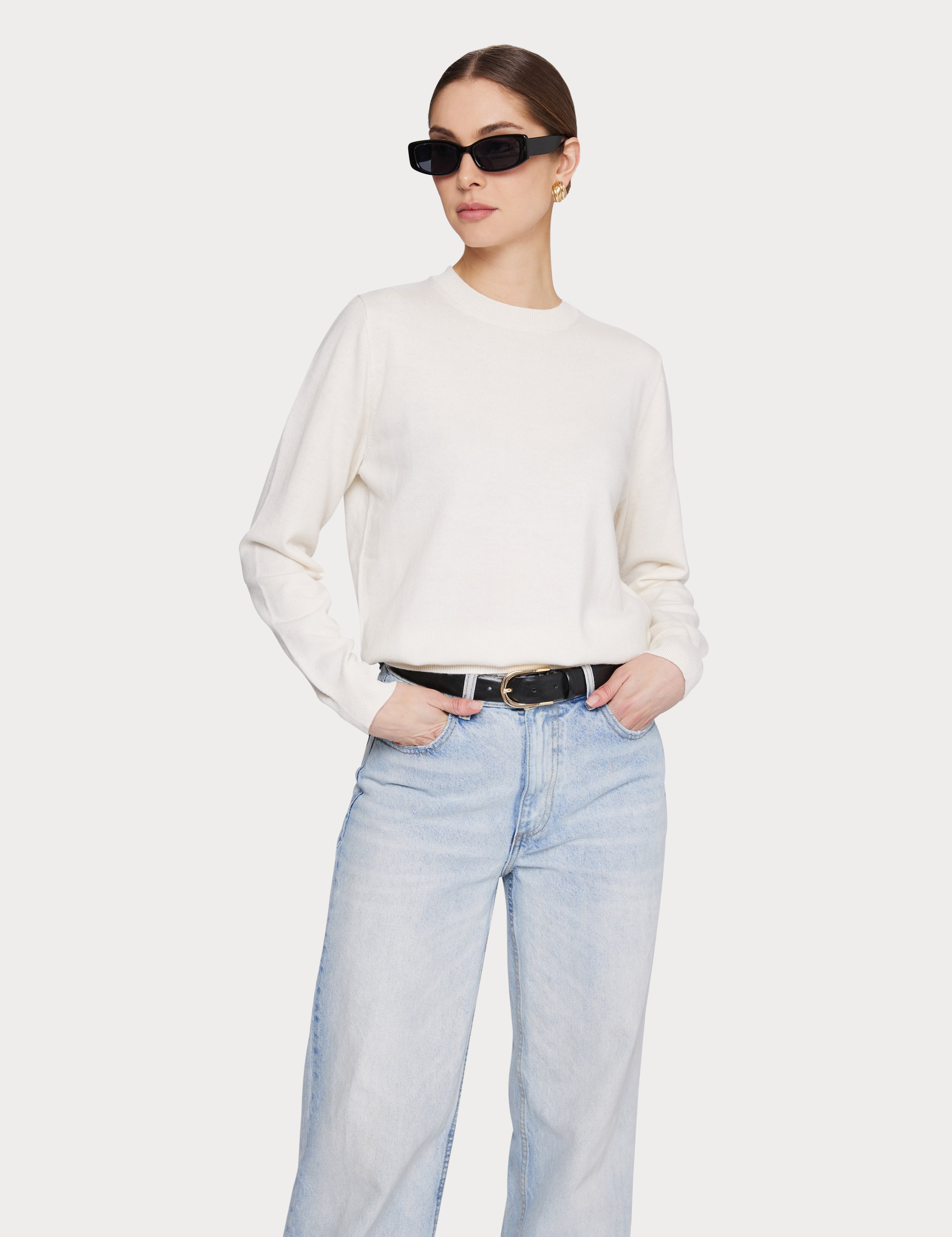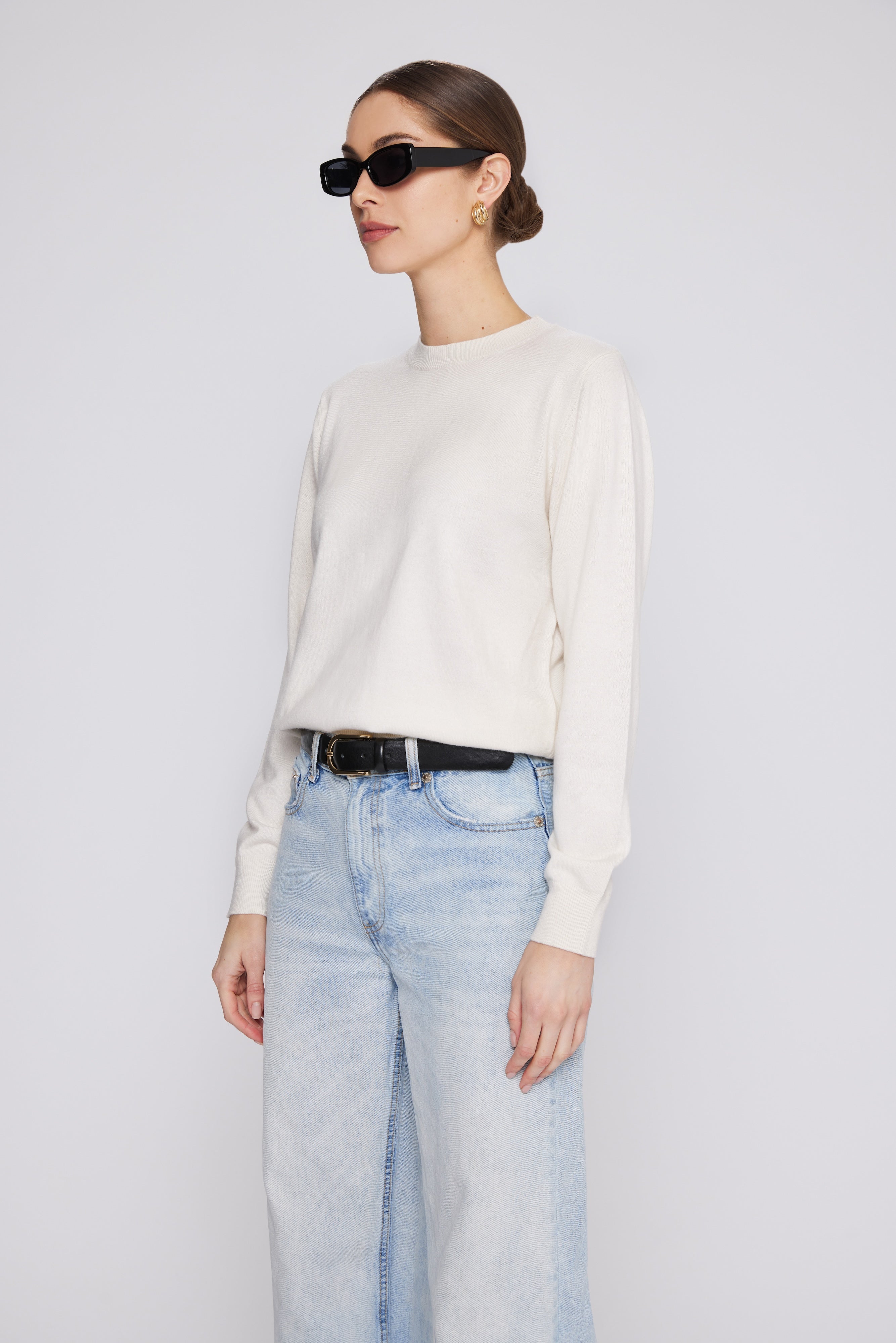 Discover the ultimate essential with our premium cashmere blend crew neck. Crafted from high-quality cashmere, this sweater offers a perfect blend of comfort, coziness, and lightweight wear. An easy-to-style piece, it’s a must-have in every woman's wardrobe. Incredibly soft and versatile, this top is ideal for lounging, everyday wear, or layering under blazers as temperatures drop. Featuring a slightly tapered waist and ribbed hemlines, it combines a chic, relaxed fit with enduring style.