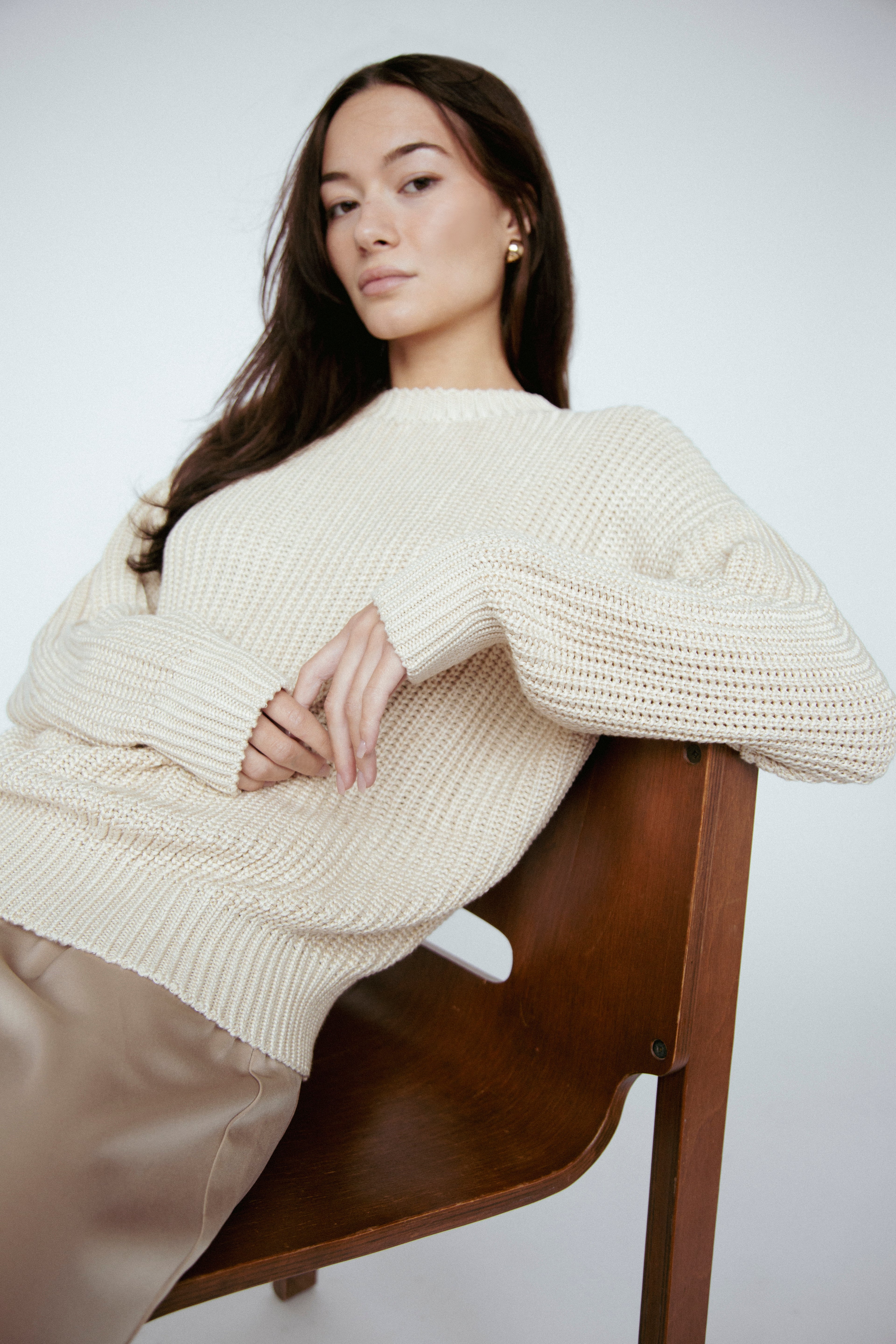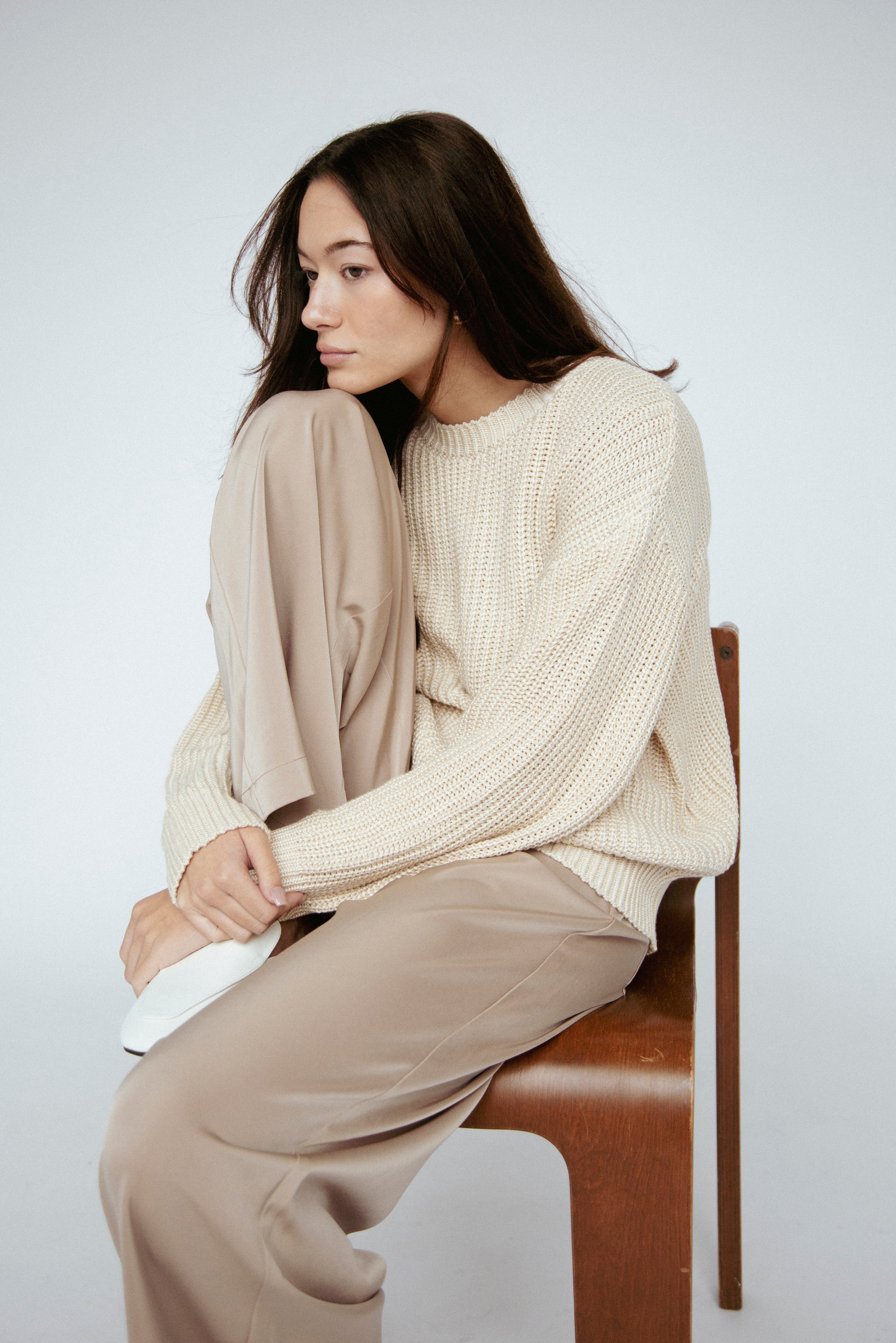 Meticulously crafted from a silky rayon yarn, this sweater offers an exquisite blend of coziness and breathability, making it a true staple for every season. The luxurious weight of the fabric creates a stunning, fluid drape that elevates the classic crew neck into a piece of understated sophistication. With its perfect balance of comfort and style, this sweater embodies timeless elegance for any occasion.