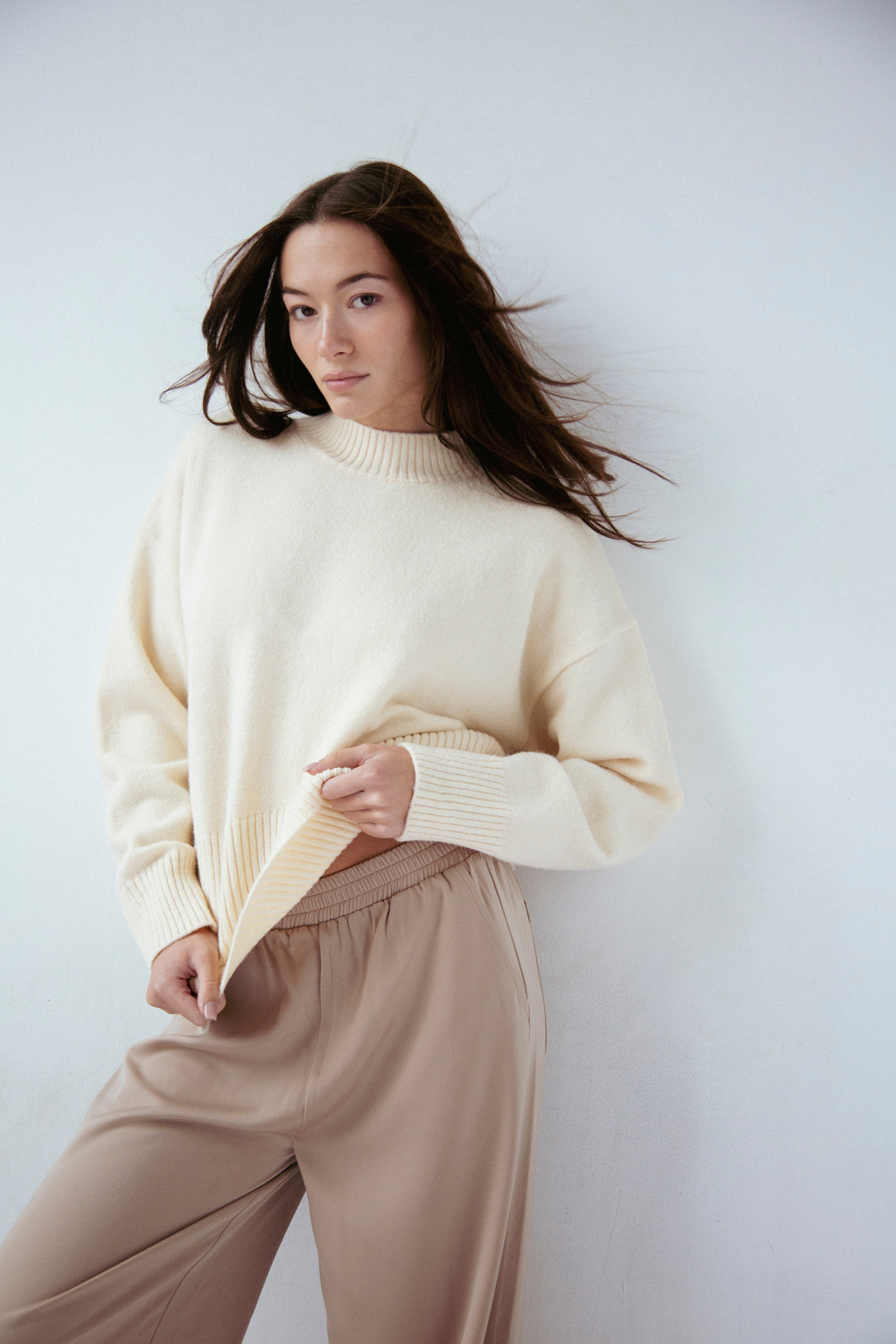 Expertly crafted from a premium, cashmere-touch yarn that combines luxurious softness with exceptional durability, this versatile pullover redefines the art of knitwear. Its effortlessly chic design features a finely ribbed neckline and hemline, offering a refined silhouette that adapts seamlessly to your every movement. Whether you're lounging in comfort or stepping out in style, this wardrobe essential is as resilient as it is refined—machine washable for easy care without compromising on sophistication
