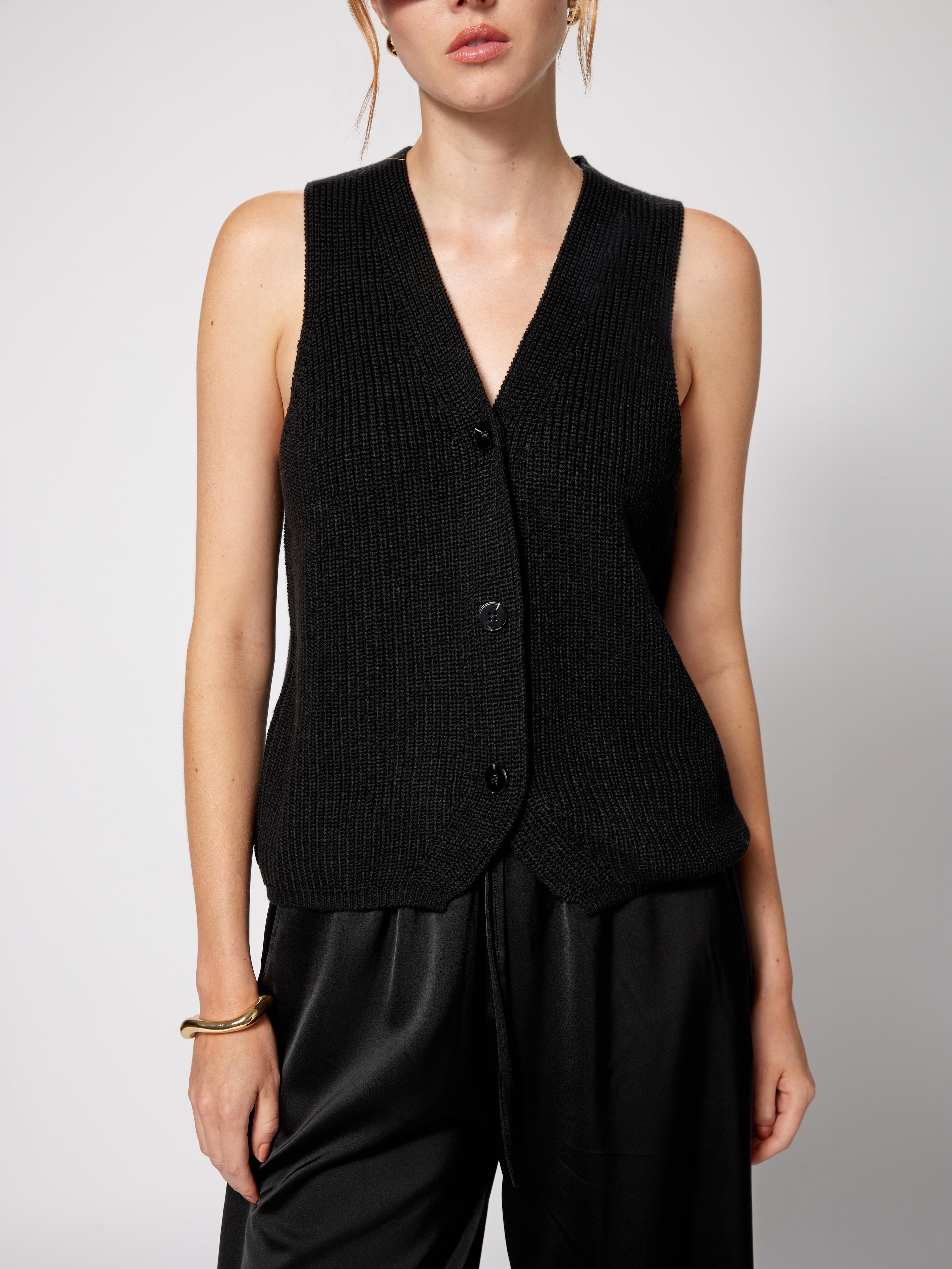 Luxuriously soft and effortlessly versatile, this cotton-cashmere blend knit vest is the elevated essential your wardrobe needs. Its timeless silhouette and sumptuous feel make it equally suited for dressing up or down—perfect for a chic dinner date or relaxed lounging.