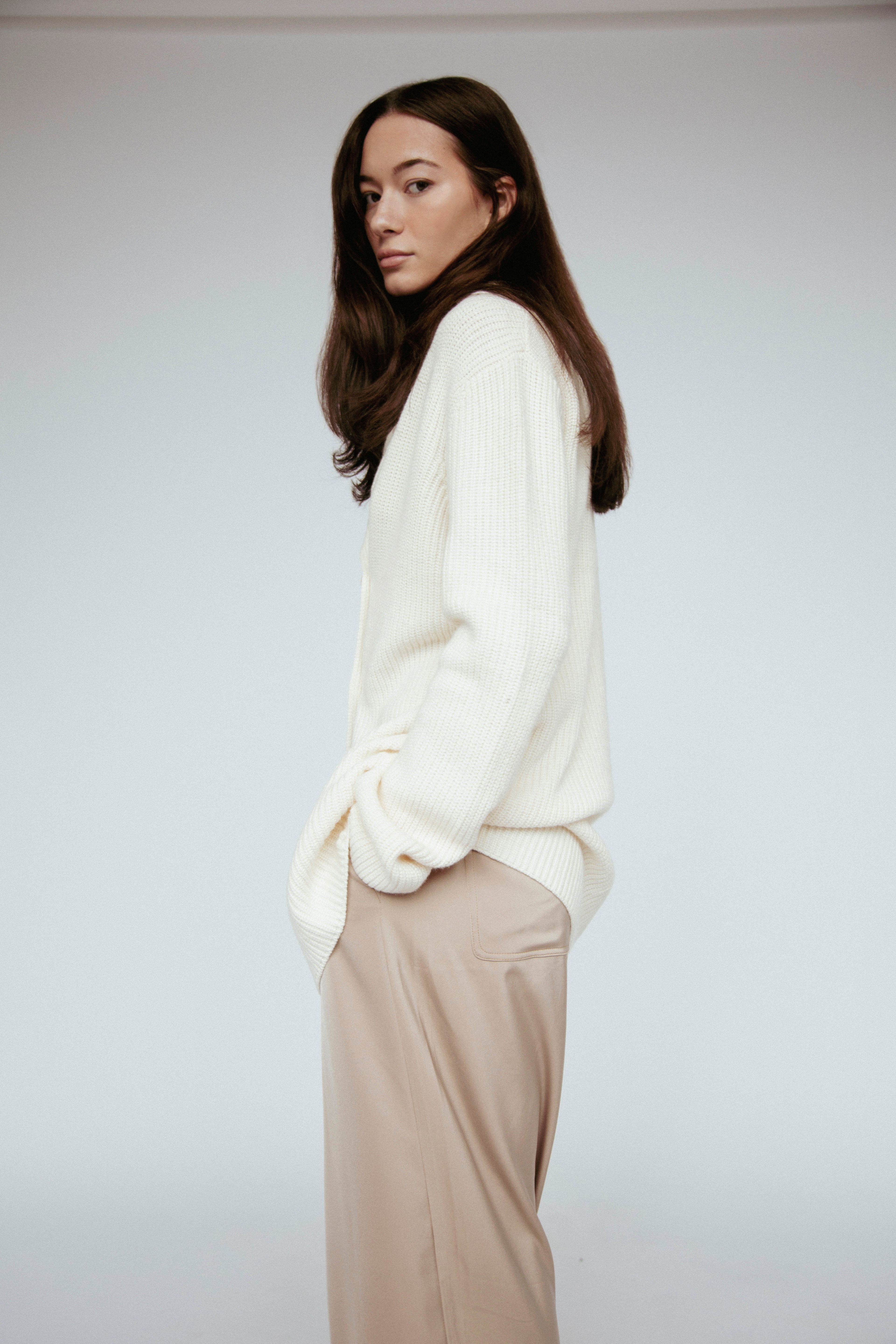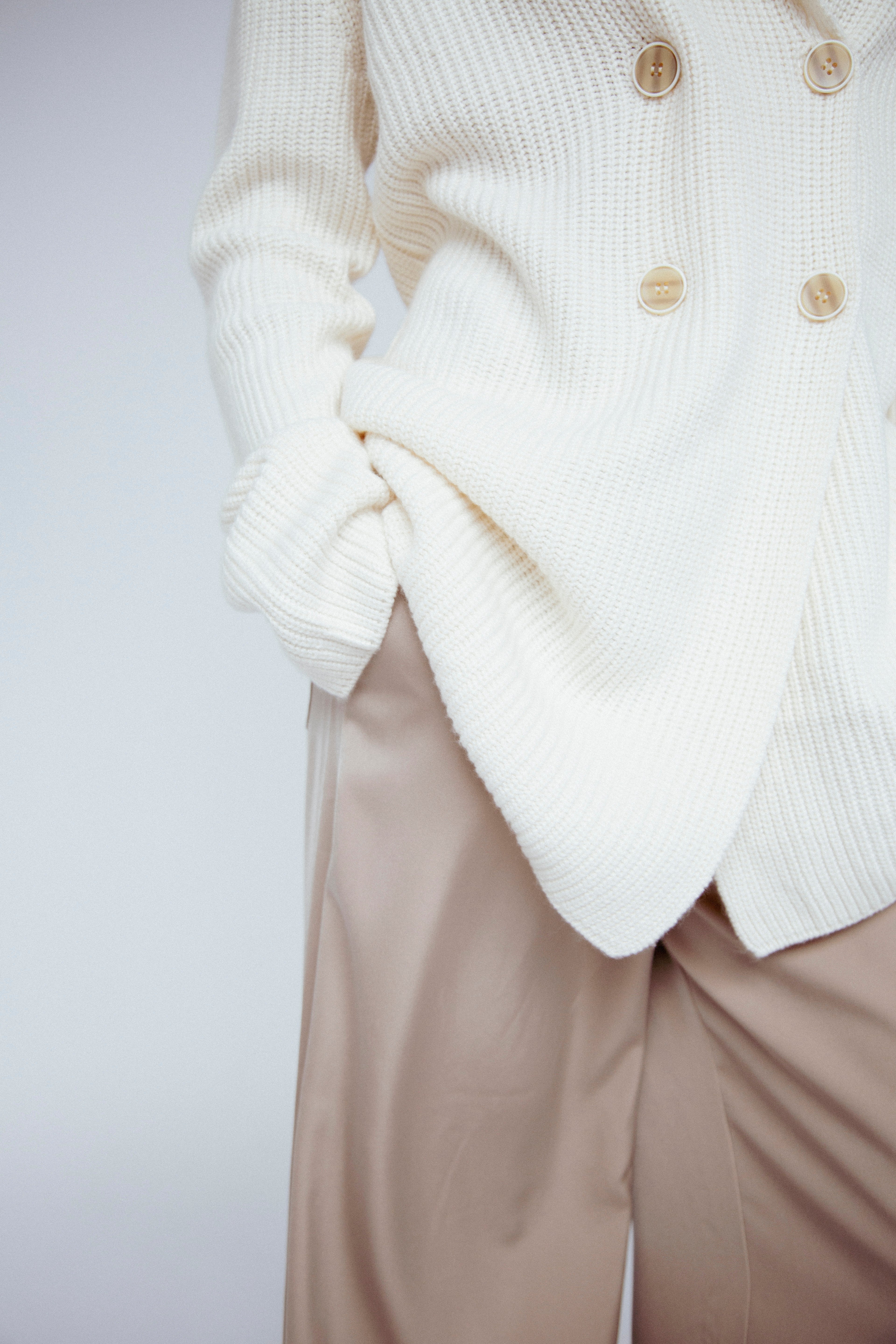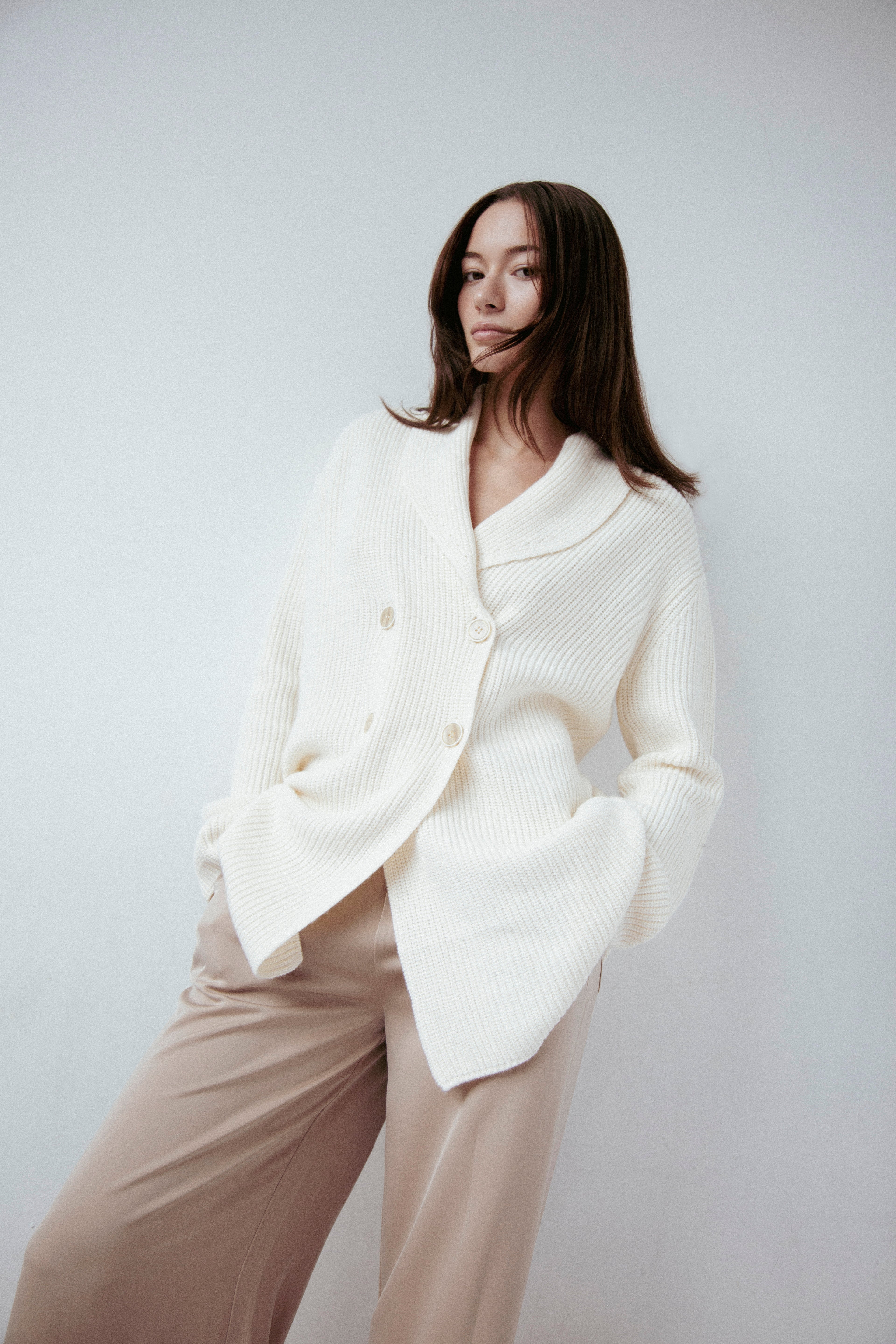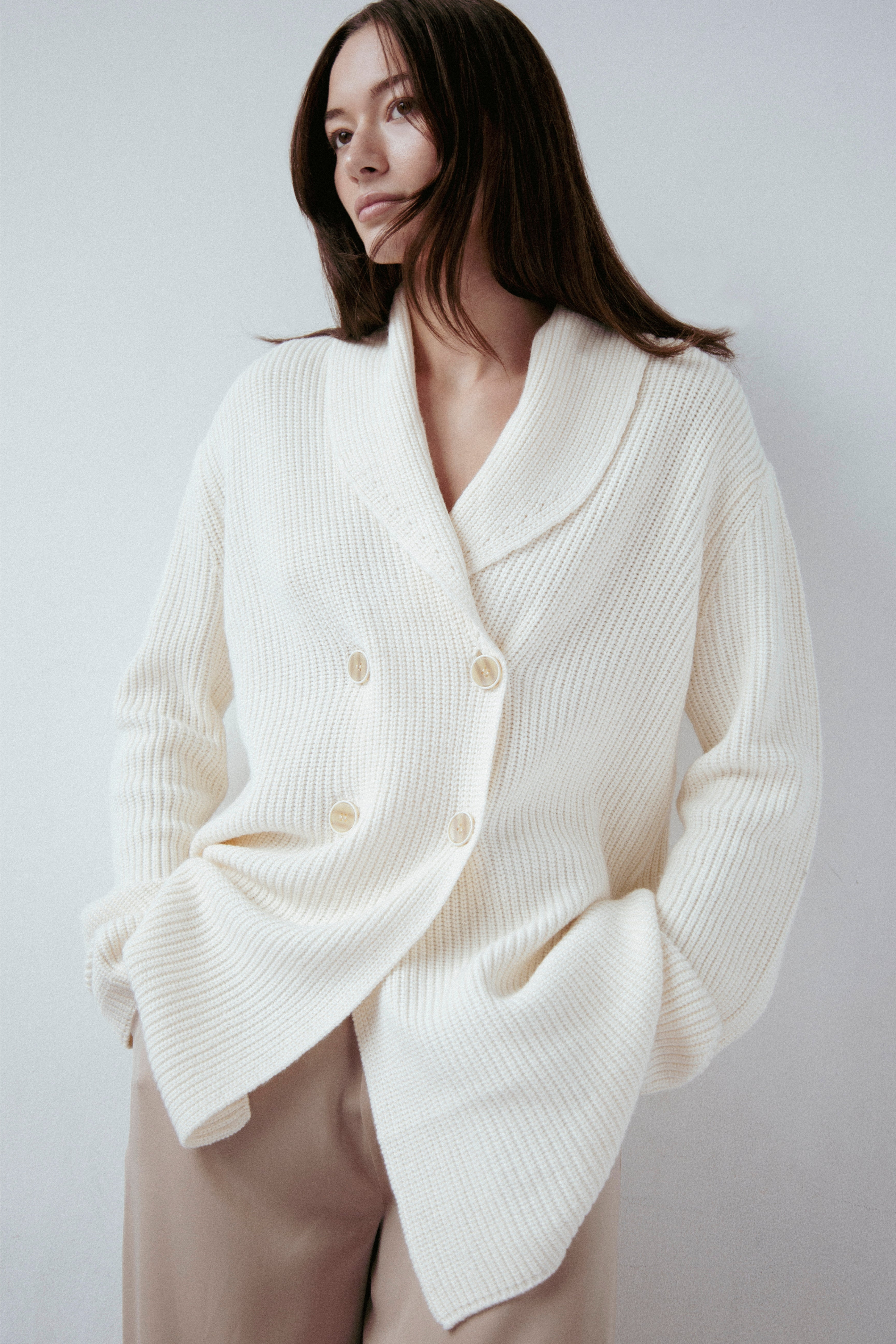 Embrace luxury with the Aspen Sweater, a cozy statement piece with endless styling possibilities. Designer Amanda Maria’s favourite, this sweater is crafted from an incredibly soft, lightweight cashmere blend, elevating cozy cottage chic to a new level. The relaxed yet chic fit is complemented by a sophisticated shawl collar with an intricate knit pattern. Featuring a double-breasted button detail, the Aspen Sweater effortlessly transitions from casual to dressed-up. Its longer length offers versatile styling options, whether worn as a sweater dress with mini skirts or layered with your favourite pants for added warmth.