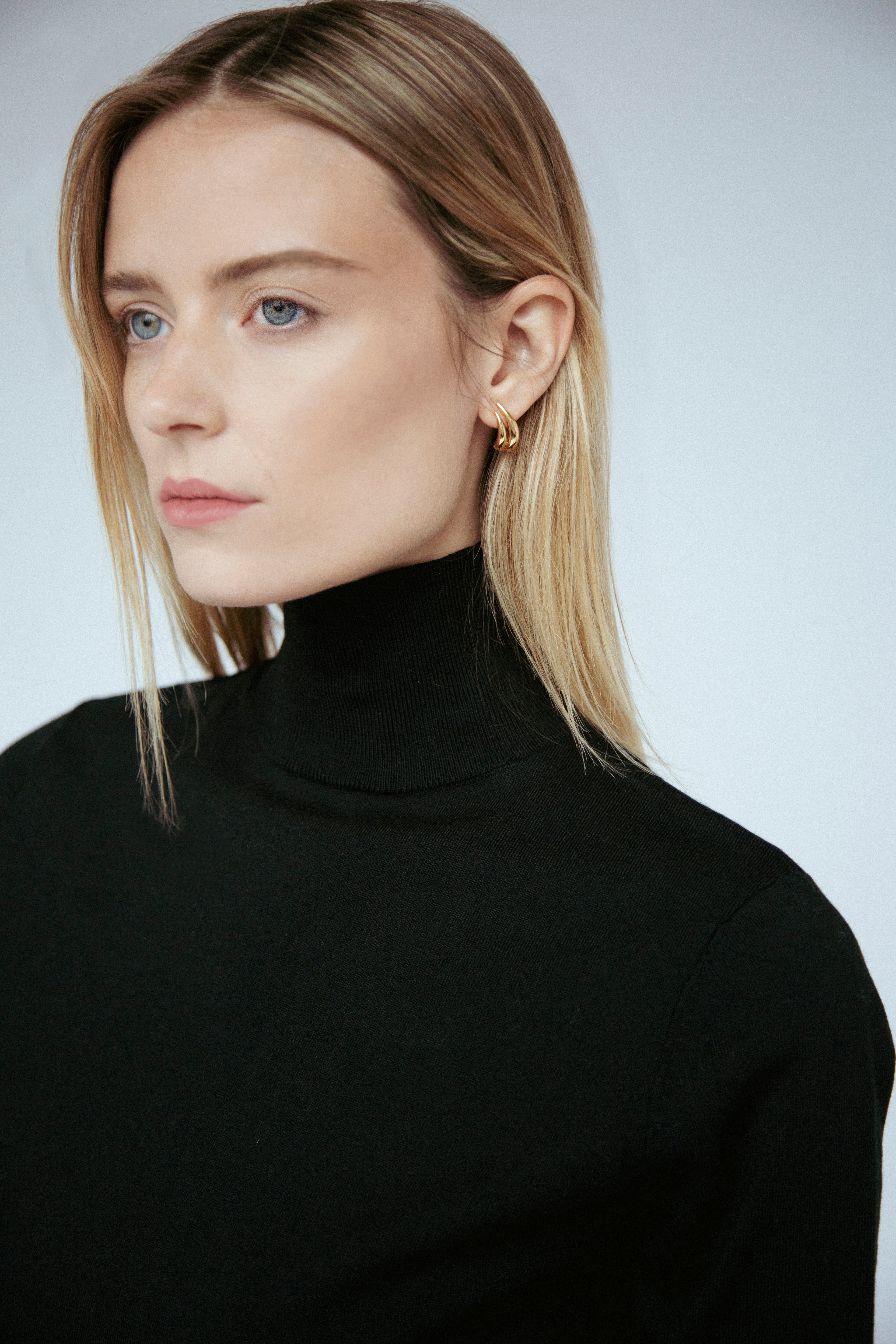 Experience timeless elegance with our premium Modal Cotton 3/4 sleeve turtleneck top. Crafted from luxurious Modal Cotton, this top features a tall ribbed turtleneck that adds texture and definition. The 3/4 sleeves offer a chic way to cover the upper arm while showcasing your jewelry stack. Ideal for layering under jackets and blazers, and wearing solo, this fine-knit top is a versatile wardrobe staple that combines sophistication with enduring style.
