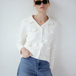Timeless sophistication meets modern style in our classic knit jacket. Crafted from thick cotton knit, this jacket offers a tailored look with subtle stretch for effortless elegance and ultimate comfort. Versatile and chic, it easily elevates any outfit—pair it with mini skirts or a cocktail dress for a polished finish, or add a touch of refinement to everyday paired with denim.