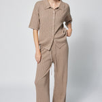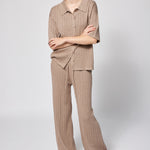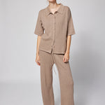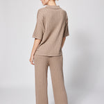 Relaxed elegance meets refined craftsmanship in this oversized knit button-down top. Perfect for lounging at home or traveling in style, it pairs beautifully with the matching pant for the ultimate in laid-back luxury.