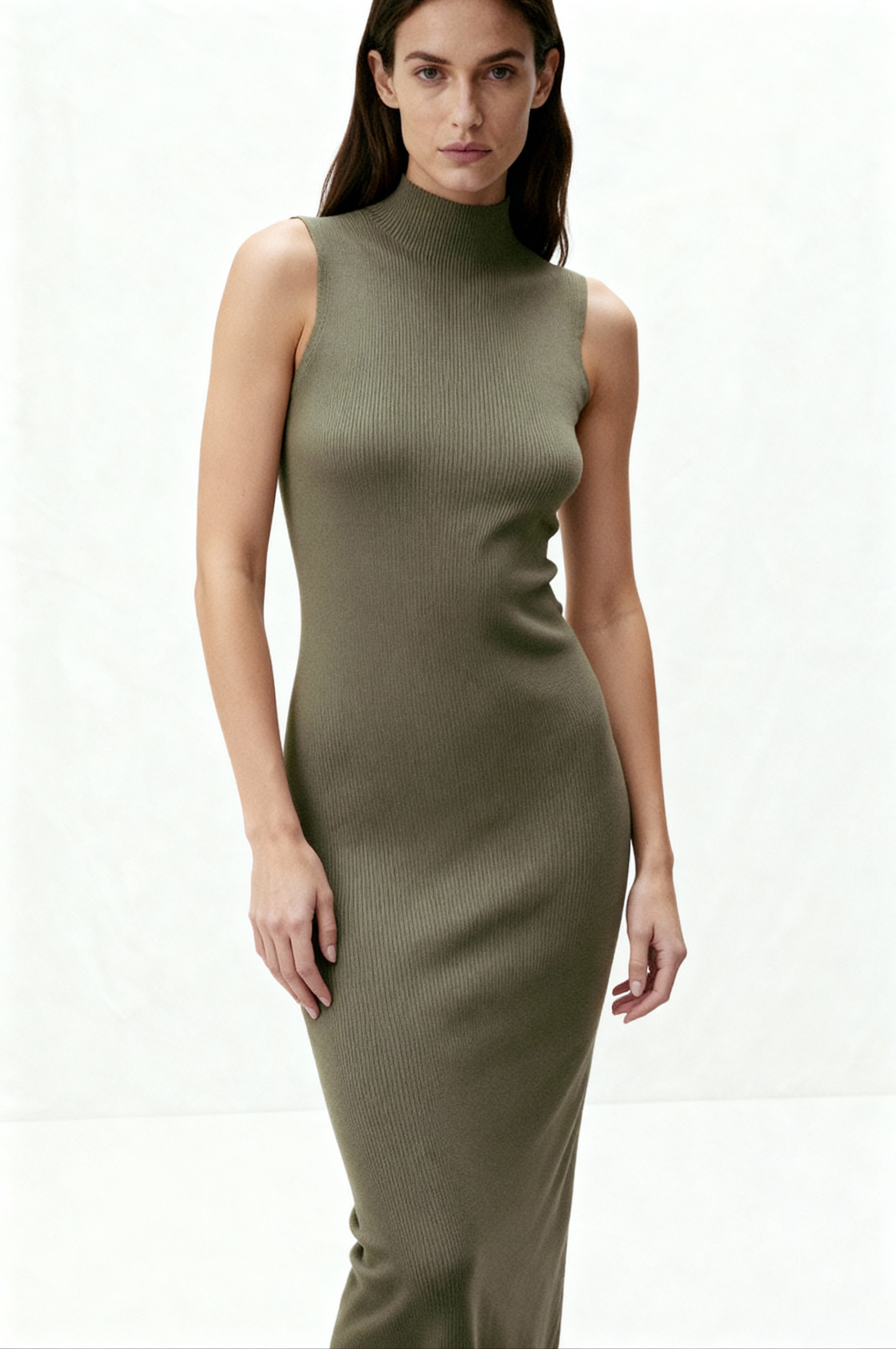 Discover timeless elegance with our classic ribbed knit dress. Featuring a mock neck and bra-friendly silhouette, this dress is crafted from premium modal knit with tight ribs, ensuring it’s not see-through and drapes beautifully over your shape without clinging. The raw edge neckline adds a touch of texture to the hemlines. Perfect for layering under blazers or pairing with sneakers for a casual look, this dress combines ultimate comfort with versatility, making it ideal for both lounging at home and stylish everyday wear.