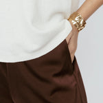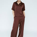 Effortlessly chic, these wide-leg pants are crafted from our signature butter satin for a soft drape and subtle sheen. Designed with a flat front waistband and elastic at the back for comfort, they feature applied back pockets and side pockets that lend a relaxed, modern edge to their polished silhouette.