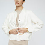 A standout piece in the collection, this bomber is crafted from our Impossibly Soft Vegan Leather—so smooth it feels like butter. Lined with our signature butter satin for an added touch of luxury, it’s finished with leather-covered snaps, a ribbed collar, and cuffs in a timeless bomber silhouette. Elevated yet effortless, it’s the ultimate modern classic.