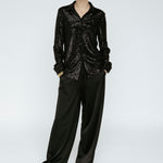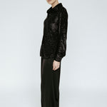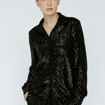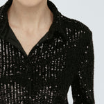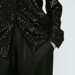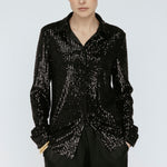 A true statement piece, this classic button-down is reimagined in allover sequins for striking shine and texture. Fully lined with a soft stretch jersey for comfort and ease, it balances glamour with wearability in a timeless silhouette.