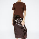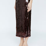 Sequin Midi Skirt Mahogany