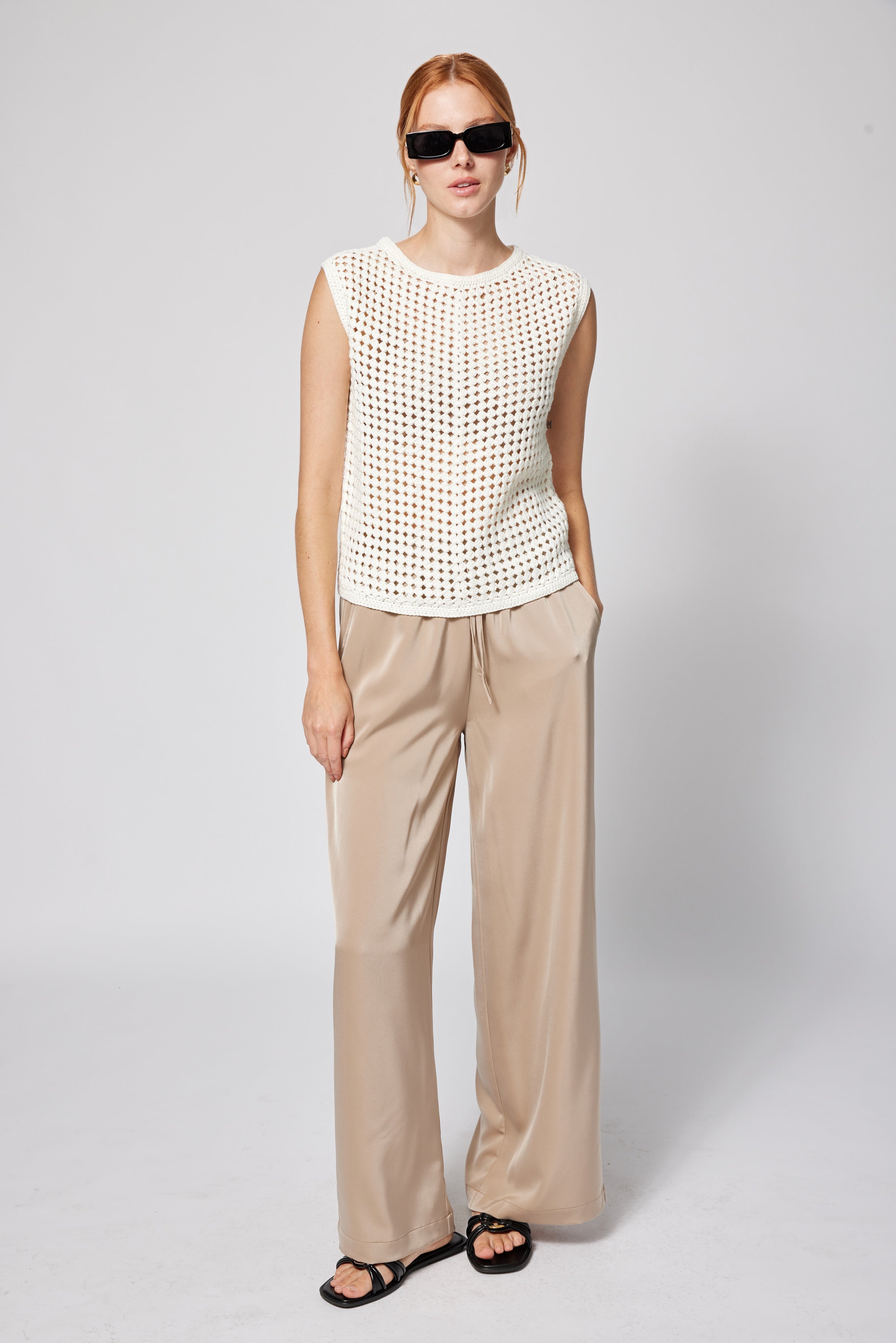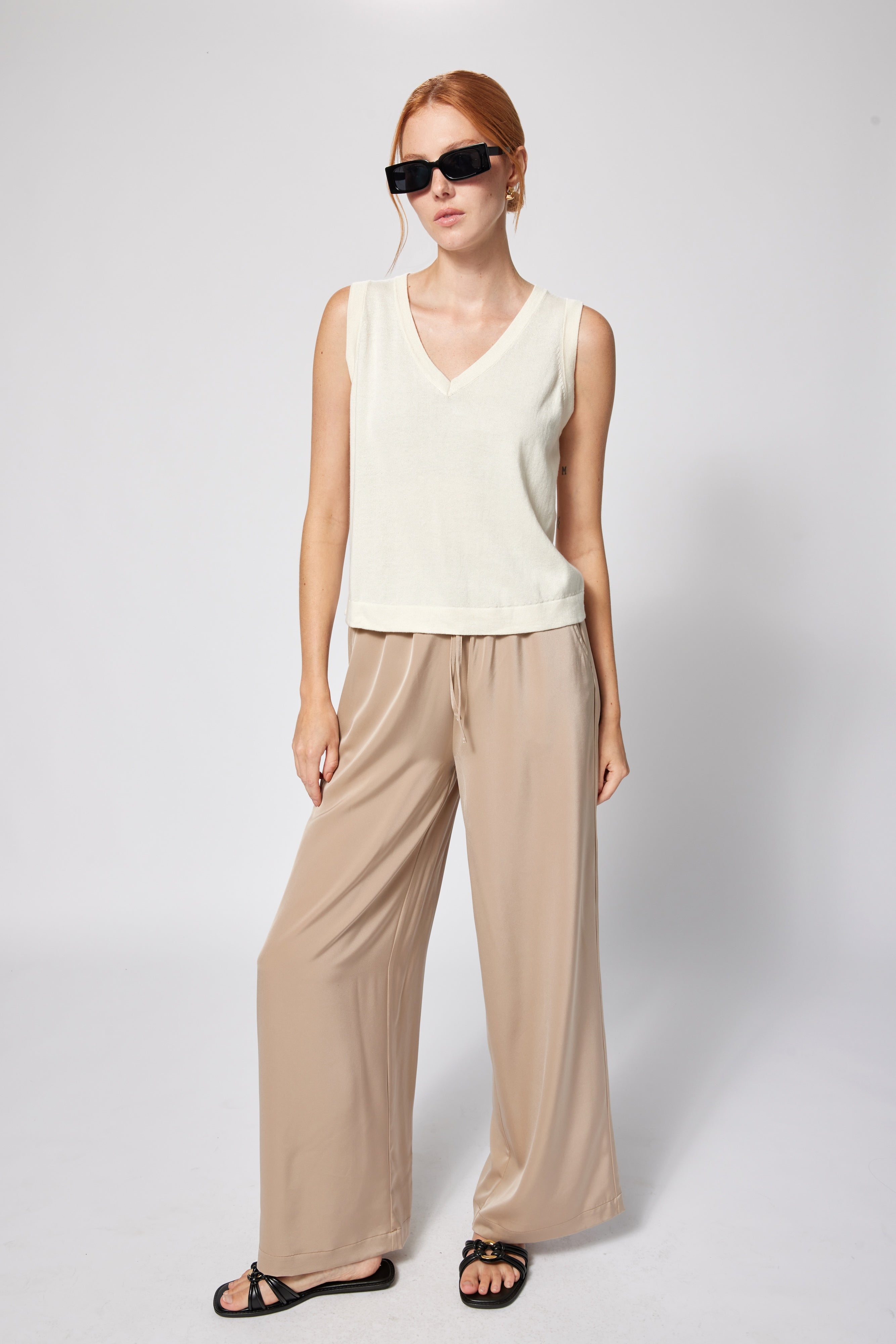 Discover the pant that does it all—crafted from the butter-soft satin of your dreams. With its breezy wide-leg silhouette and a subtle, elegant sheen, this pant blends sophistication with effortless comfort.