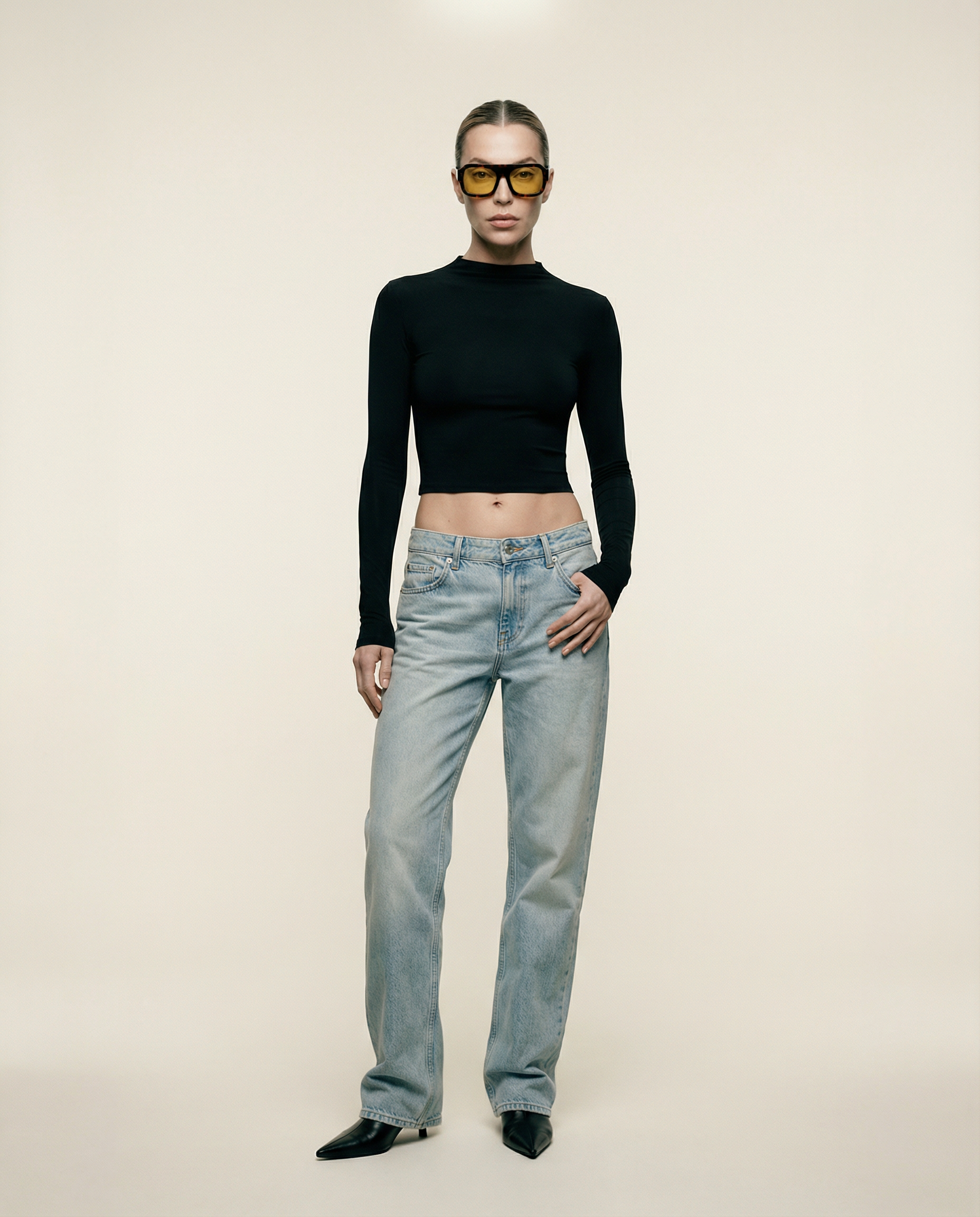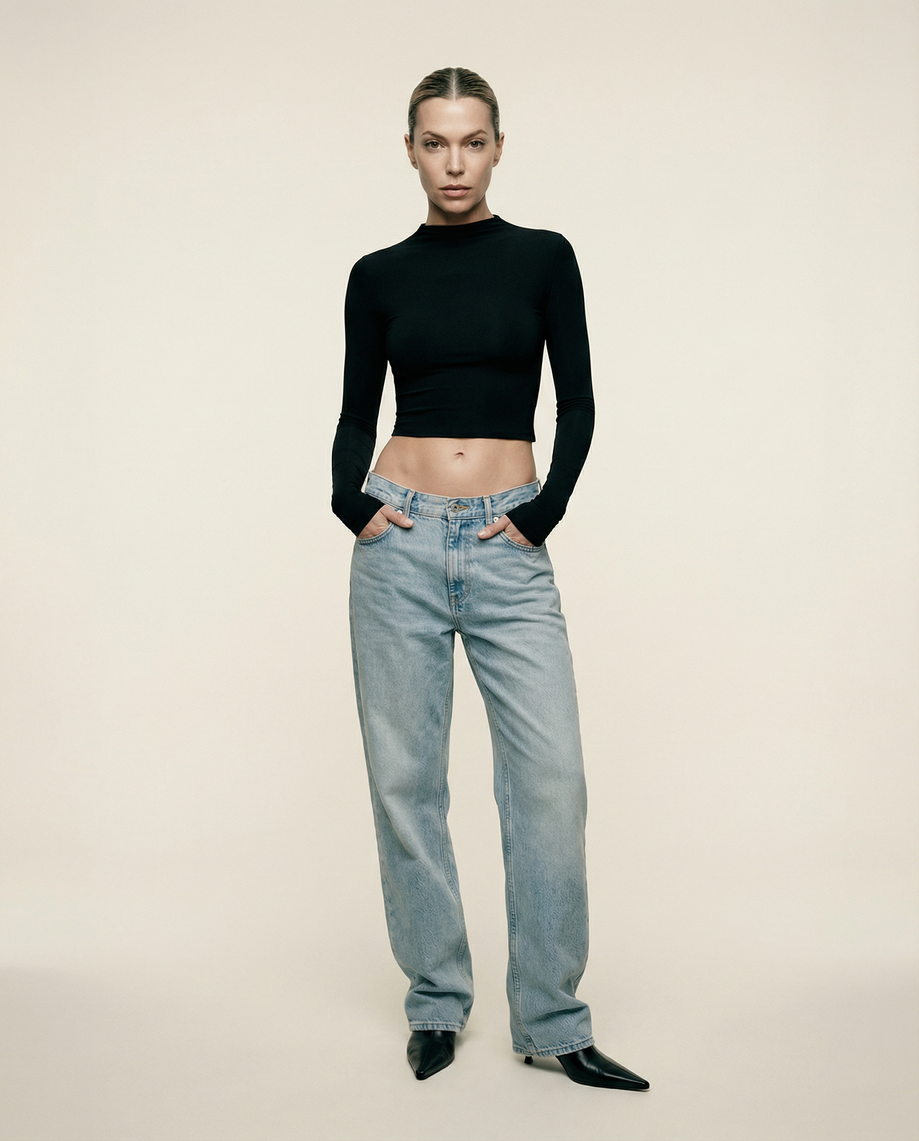 Mock-neck Long Sleeve Top Black