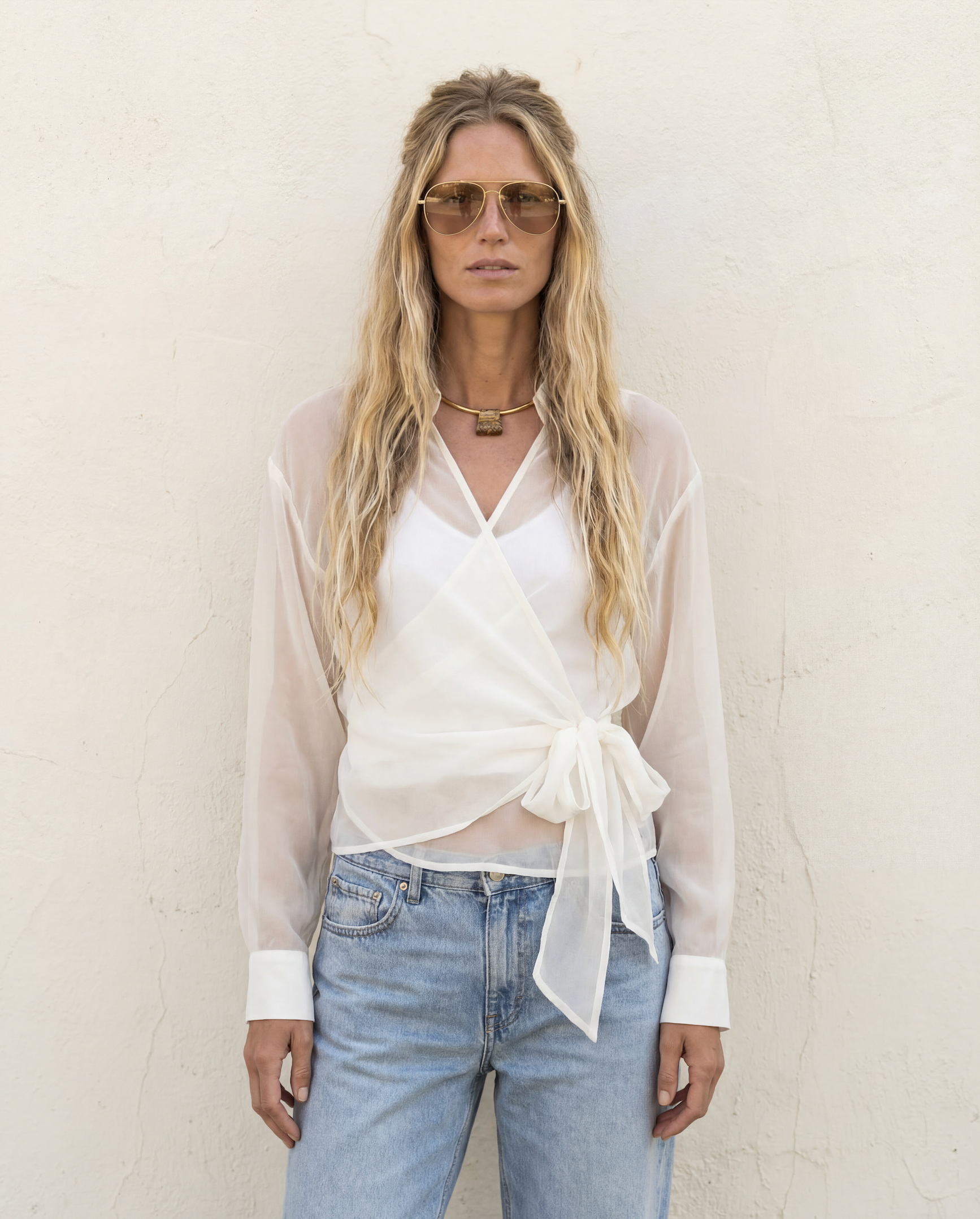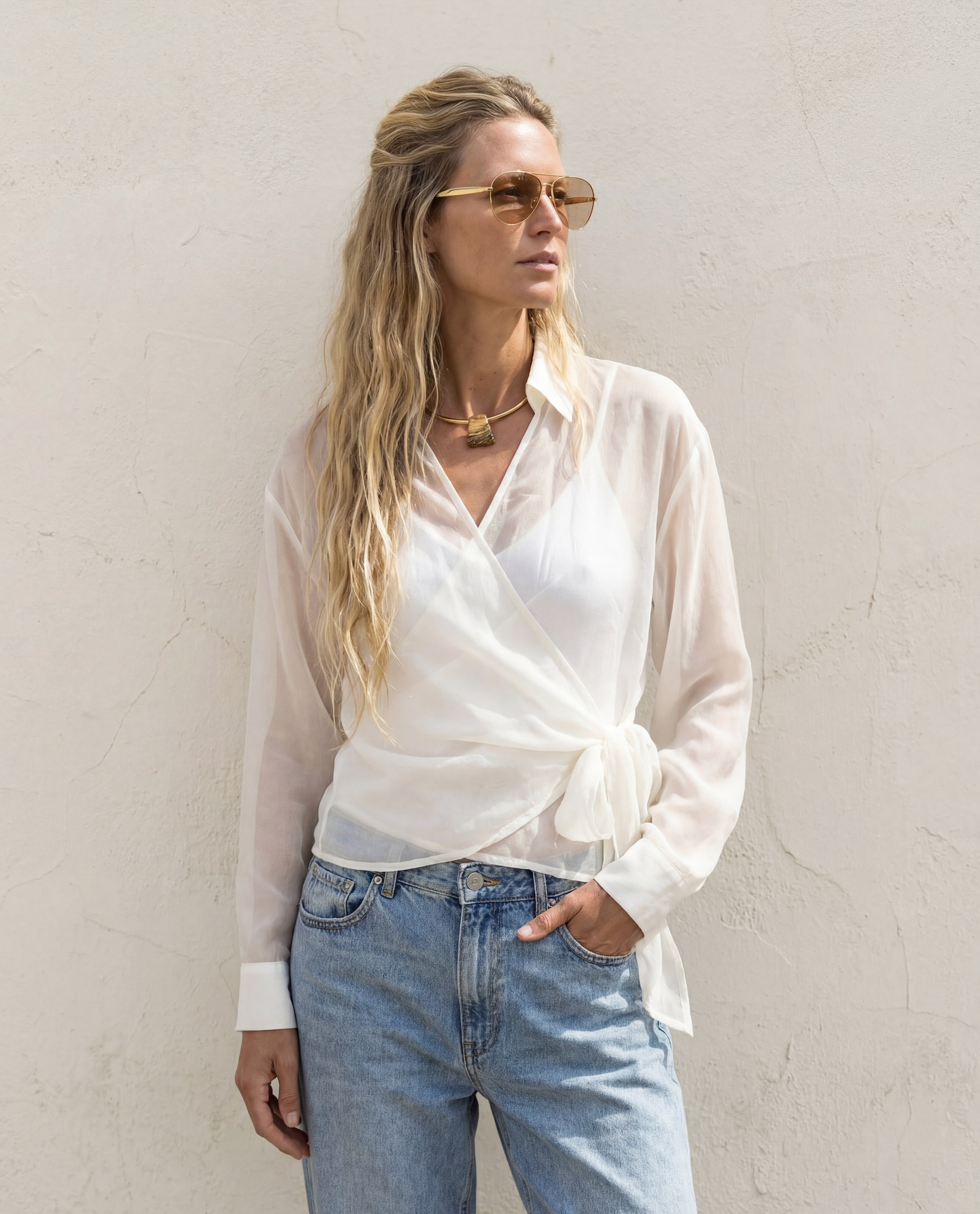 Effortlessly versatile and refined, this chiffon wrap blouse transitions seamlessly from evening occasions to everyday wear. The adjustable wrap design offers flattering coverage and styling flexibility, while the included tank slip layer provides a polished foundation—or wear it your way. Perfect for date nights, vacations, and layering over swimwear, this piece adapts to your lifestyle with understated elegance.