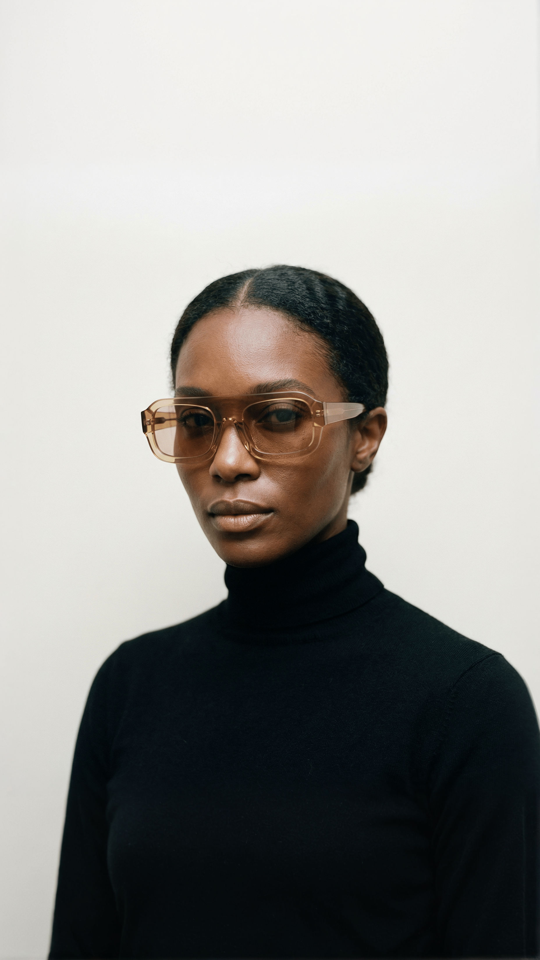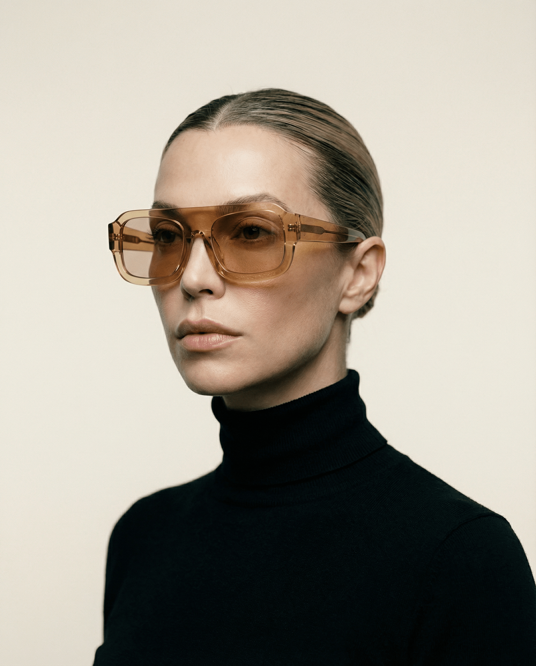 A bold, oversized transparent silhouette crafted in polished acetate for a strong retro statement. CE-certified with UV-protective lenses to deliver confident coverage and everyday clarity. The lighter shade is ideal for fall and winter days when the sun is softer but you still want the ease of a sunglass.