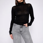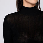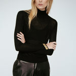 Discover the barely-there elegance of our incredibly lightweight top. Crafted from a semi-sheer ribbed knit of exceptional fineness, this turtleneck offers a breathable, comfortable fit that’s perfect for layering or wearing solo. Its delicate, lightweight nature ensures a sophisticated, semi-sheer look, making it a versatile addition to your wardrobe.