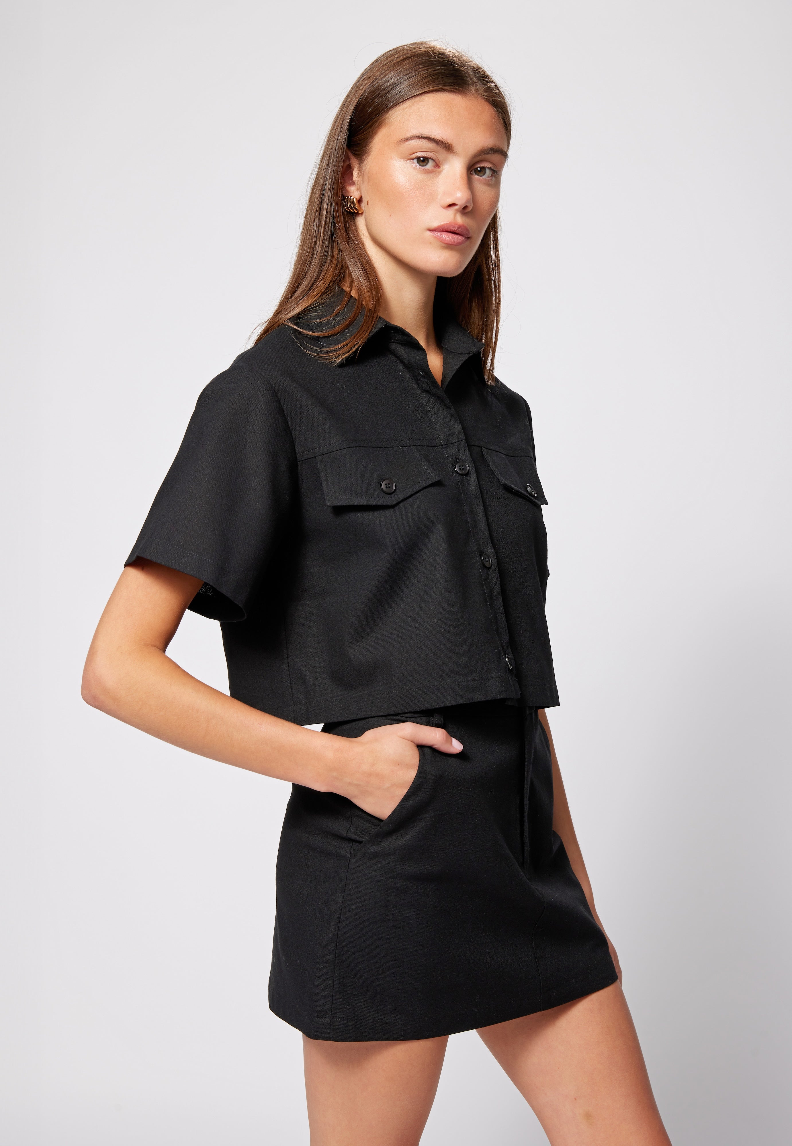 Refined simplicity meets modern design in this straight-fit linen-cotton mini skirt. Tailored to perfection, it features a classic fly front and a single back pocket that adds an elevated, designer touch.