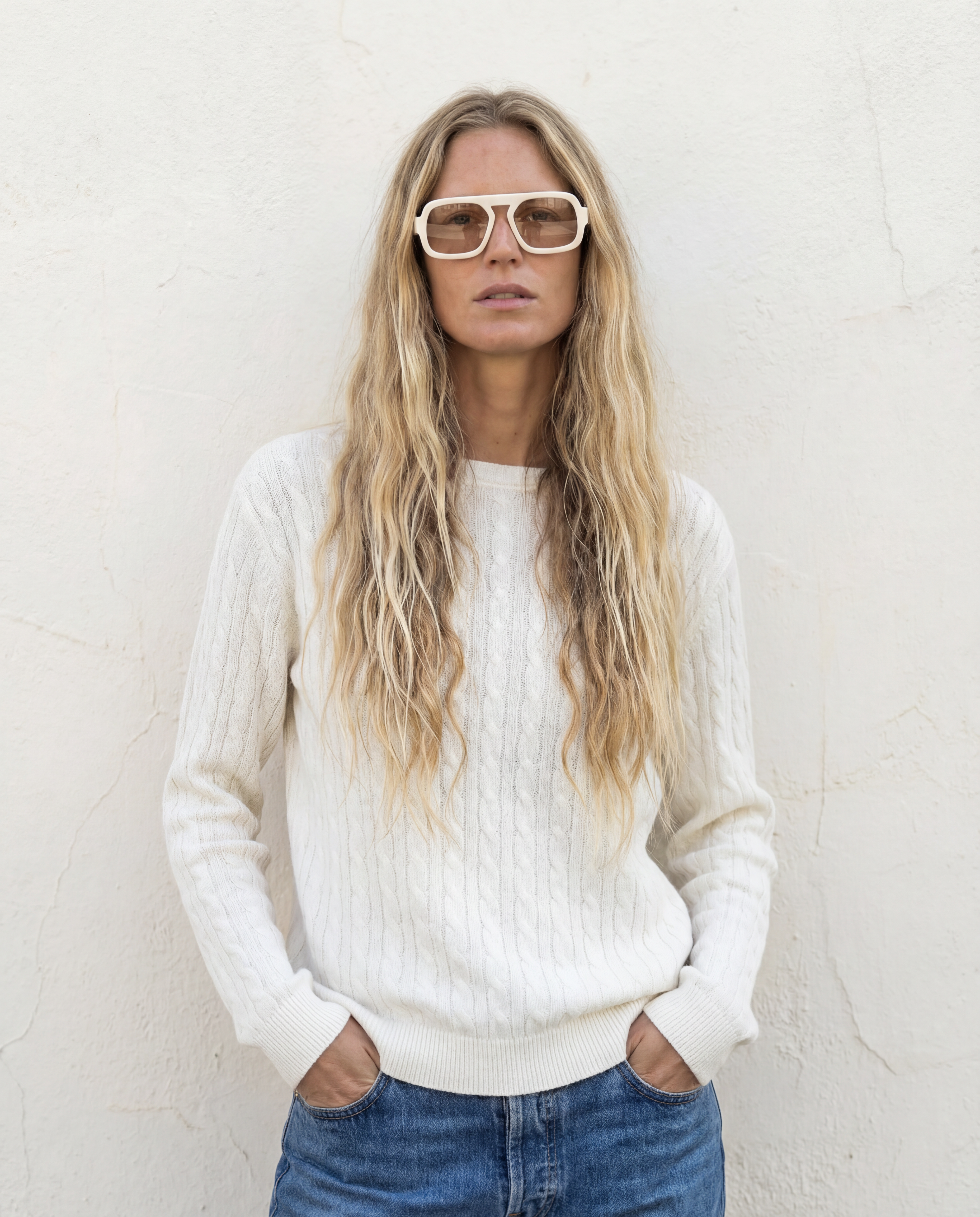 Cashmere Braided Crew Ivory