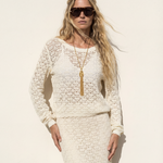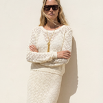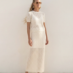 Lace Knit Midi Skirt Ivory