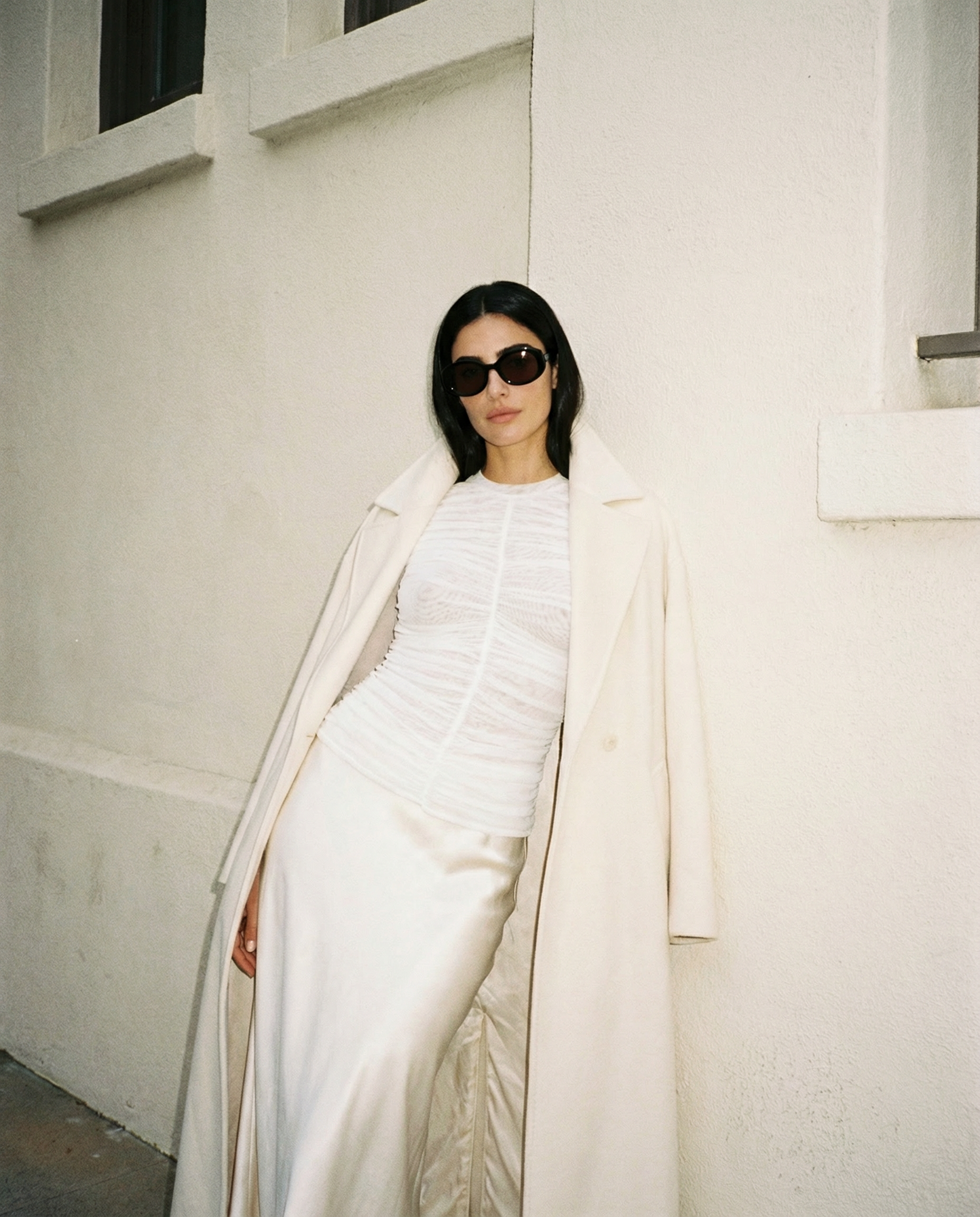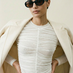 Crafted from sheer mesh, this top features delicate front gathering that adds texture and allure. Styled here with a nude bralette for a modern, confident look, it also ships with a coordinating camisole for added coverage—allowing you to wear it your way.