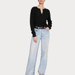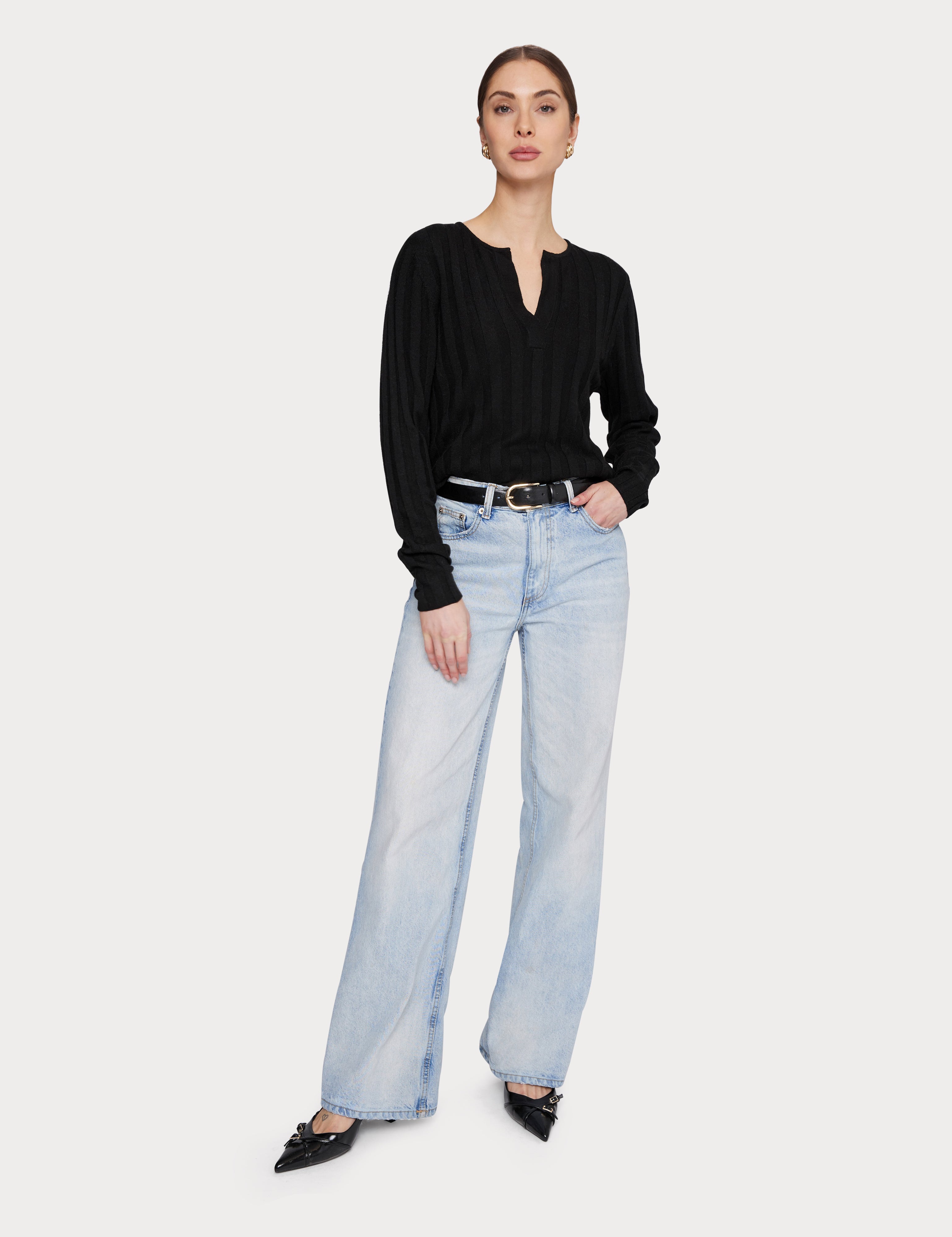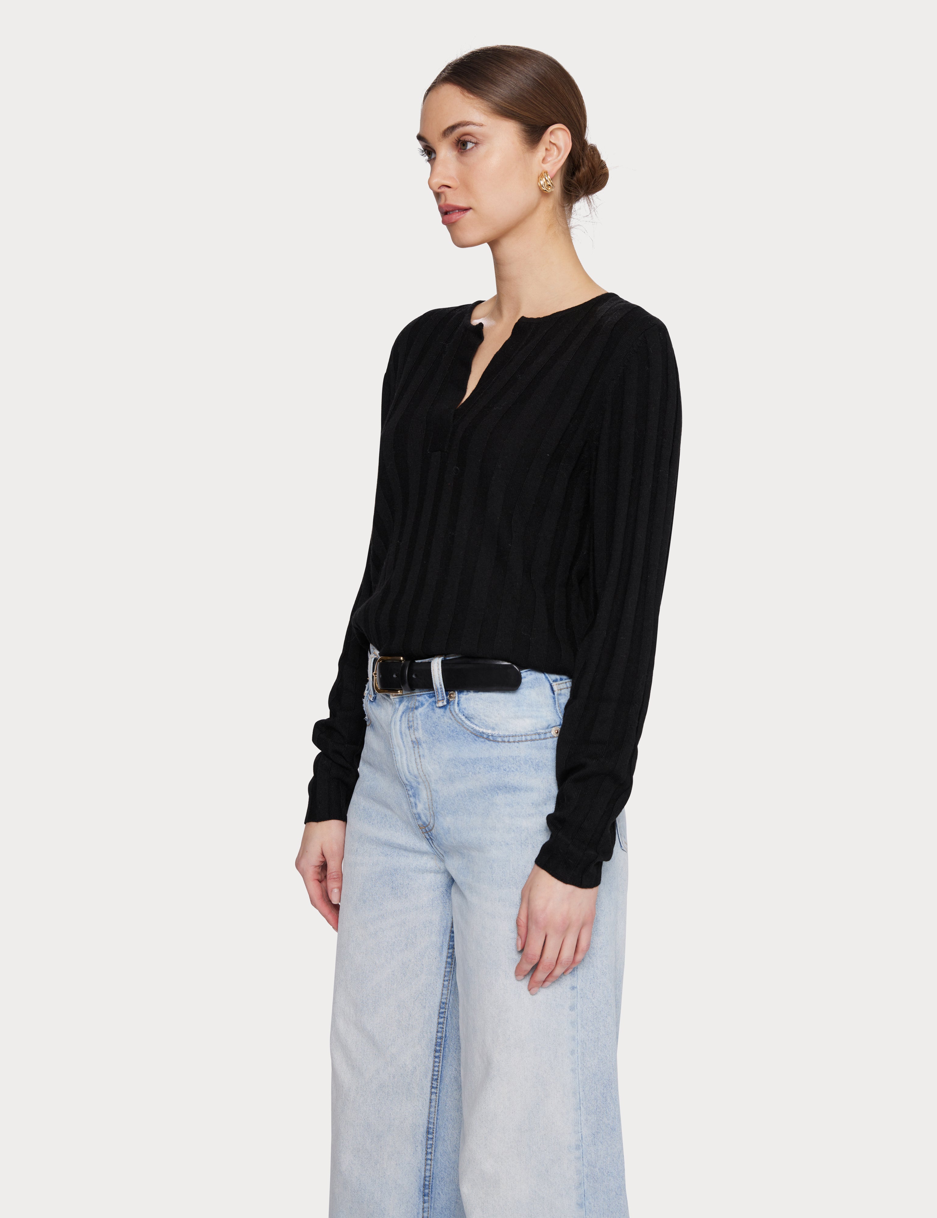 Experience the luxury of our premium cashmere blend wide-ribbed top. Crafted from a high-quality cashmere blend, this top offers a cozy yet lightweight feel, making it perfect for elevated comfort. The V neckline and wide ribbing knit detail add a touch of sophistication, while the straight-fit bodice ensures a sleek silhouette. Versatile and easy to style, it layers effortlessly under blazers and jackets or shines on its own for a simple yet refined look.